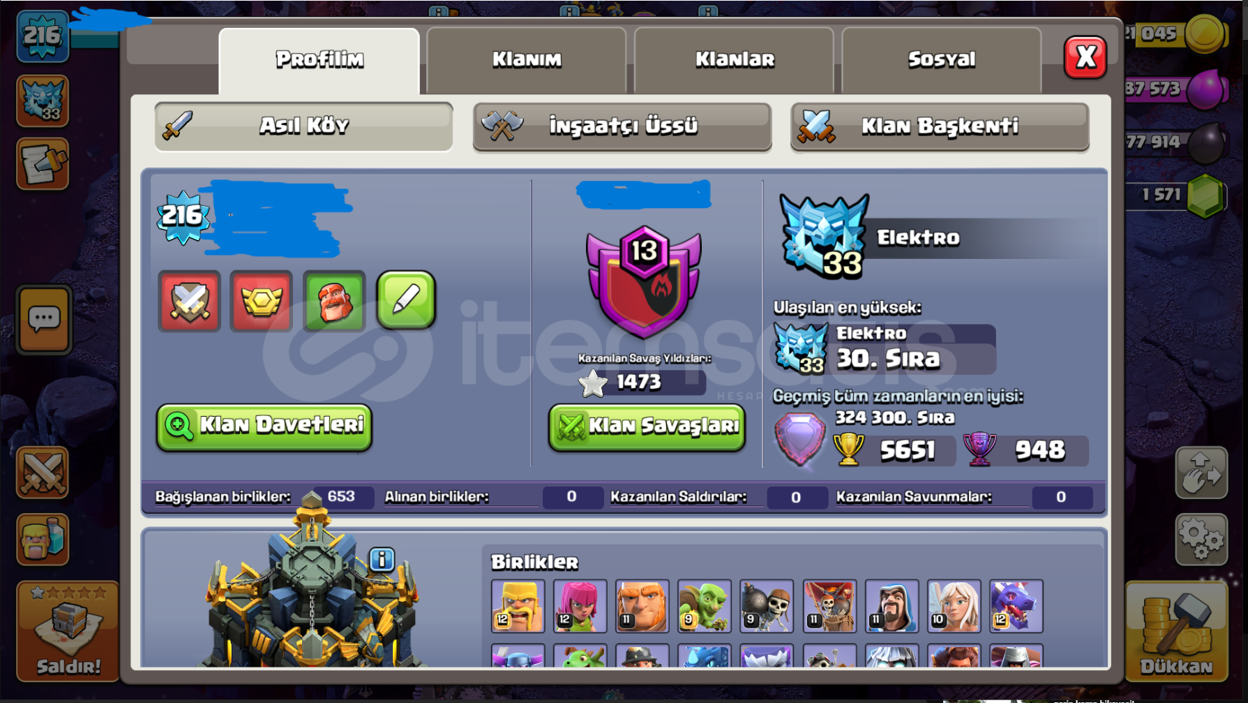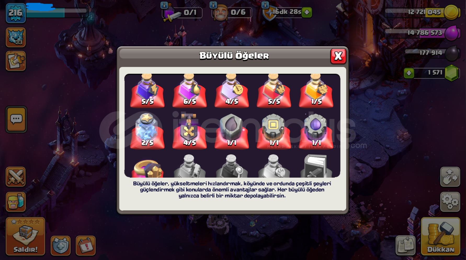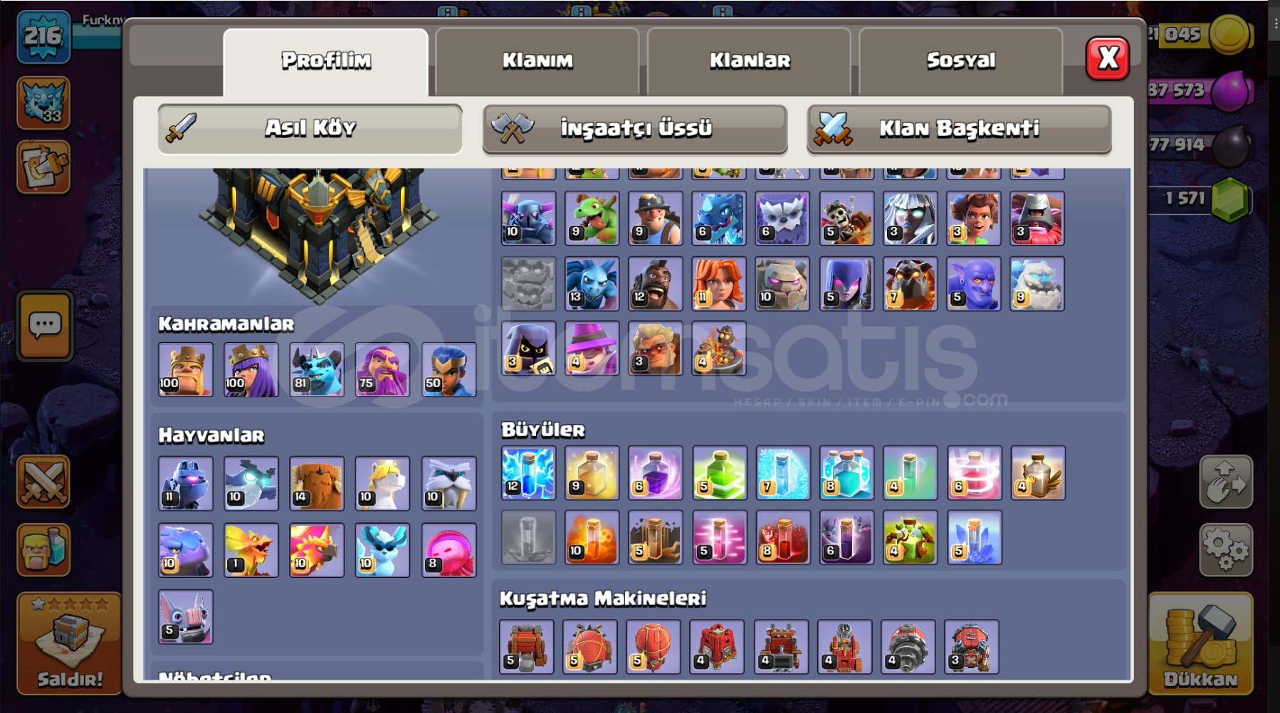 HESAP AKTİF OYNADIĞIM BİR HESAPTIR2 BATTLE PASS ALINMISTIRAĞIR SAVUNMALAR FULL SADECE BÜYÜCÜ KULELERİ KALMIŞTIRALAN KİŞİ DİREKT BELEDİYE 18 E BASABİLİRTOPLAM 6 EFSANE SKİN VARDIR2 ARKA PLAN BÜYÜLÜ ARKA PLAN VE ATEŞ ARKA PLAN MEVCUTTURKAHRAMANLAR FULLDÜR MİNYON HARİÇKAHRAMAN EKİPMANLARININ LEVELİ ÇOK İYİ SEVİYEDEDİRRAHATLIKLA HESABI AL...