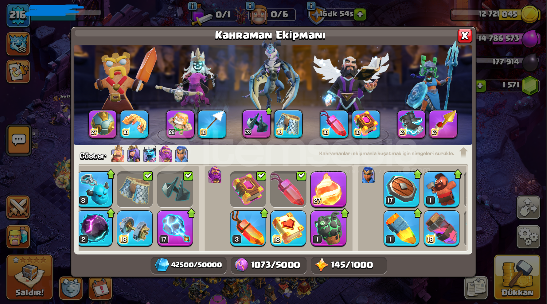 KAHRAMAN EKİPMANLARININ LEVELİ ÇOK İYİ SEVİYEDEDİR