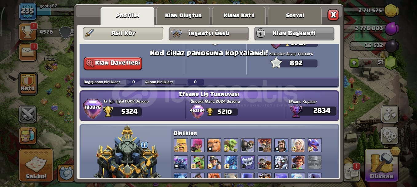 Otomatik teslimattır aktif olmasamda alabilirsiniz!Eposta:şifre formatında ve hesabı nasıl üzerinize alacağınızın hakkında bütün bilgiler satın alınca otomatik iletilecek!Hesaba detaylıca bakmak için:#YYGQVC8UHesaplar asla geri çekilmez!Hesap koruması aktif değildir!Yeni güncelleme sebebiyle sezon geçişlerinde CLASH ROYALE HESAPLARINDA kupa kaybı yaşanabiliyor bilgin...