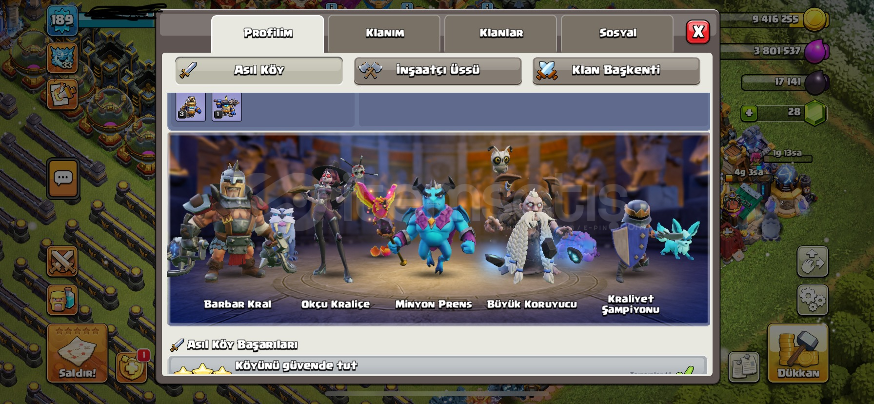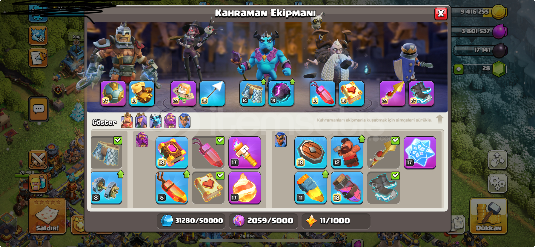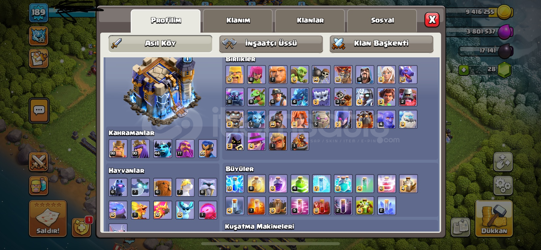şahsi hesabımdır vakit ayıramadığımdan ve nakit ihtiyacından dolayı satılık ilk bilgileri ve faturaları mevcuttur. Meta ekipmanlar max şampiyon max koruyucu 76 kral 98 kraliçe 90 Ordu levelleri iyi durumdadır savunmalar ve duvar maxtır