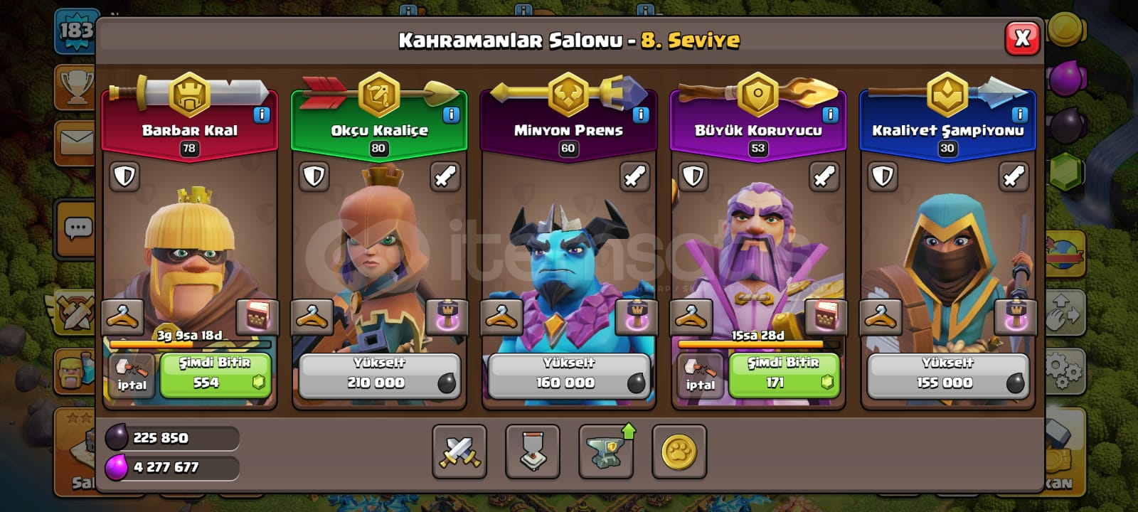 Belediye binasi ile ilgili her sey max8 köstüm 8 destansi ekipman Barbar kral 79Okcu kralice 80Buyucu 54Kraliyet 30 Minyon prens 60