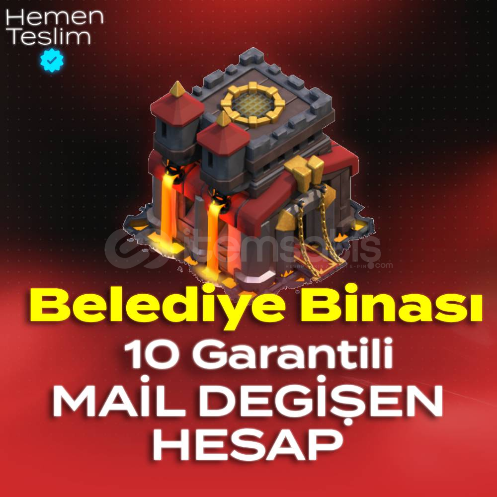 Bu ilanı satın aldığınızda, en az Belediye Binası 10 garantili, maili tamamen değiştirilebilir ve sadece sizin kontrolünüzde olacak bir Clash of Clans hesabına sahip olursunuz.