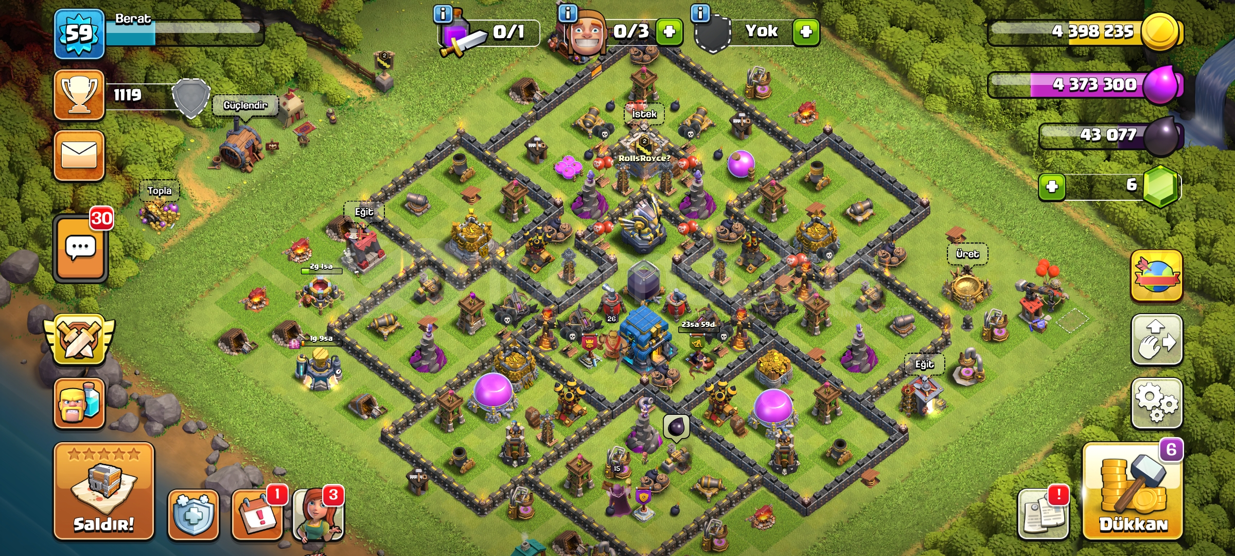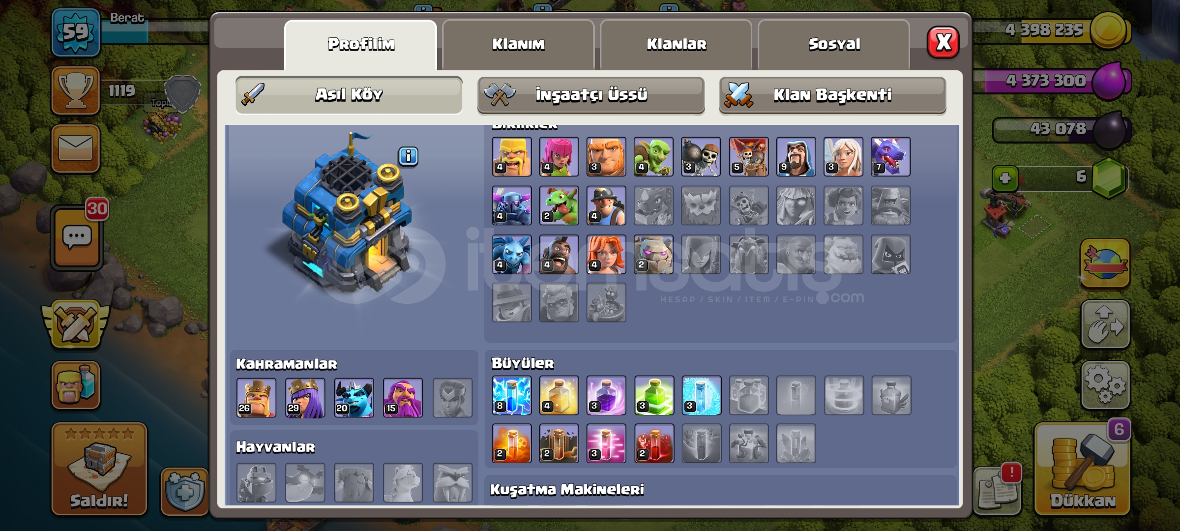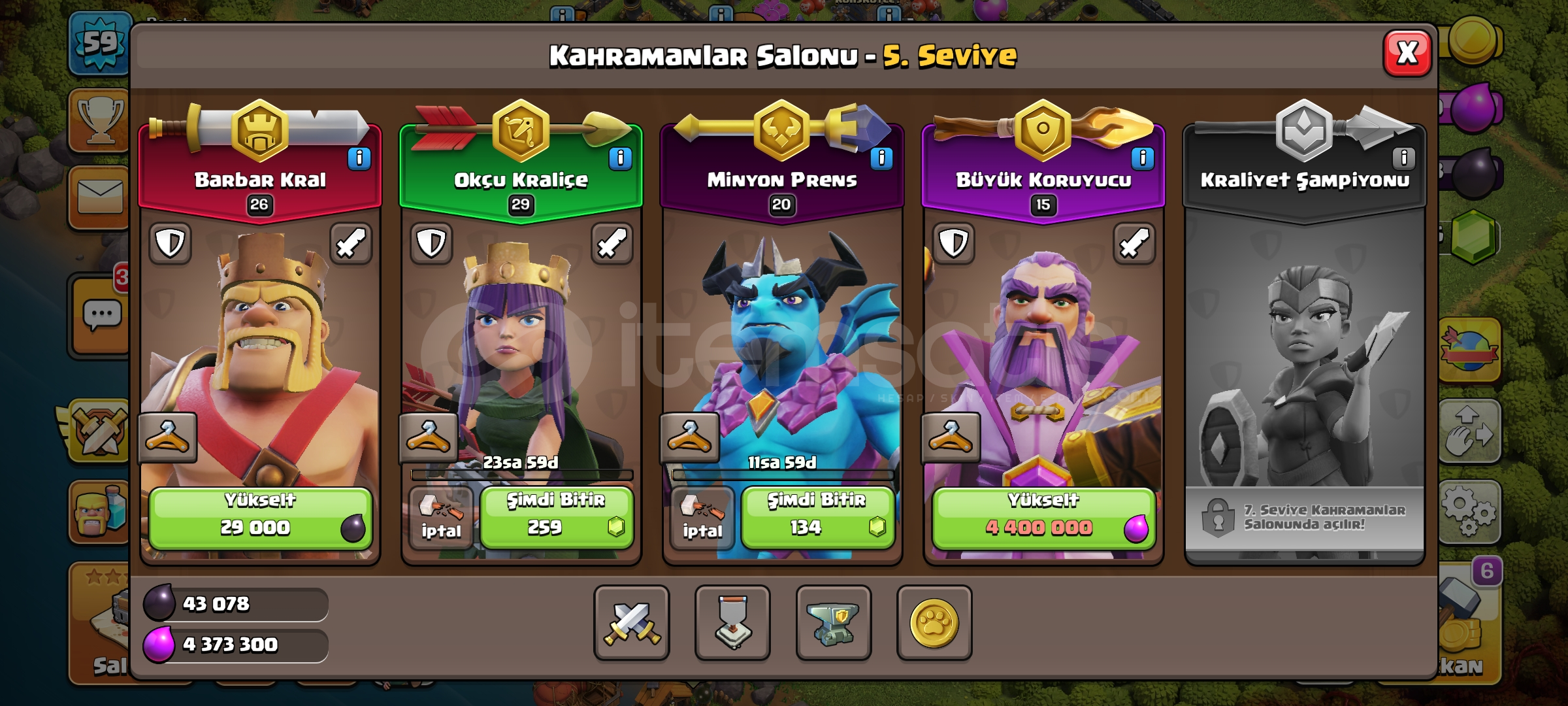 Belediye binası 12 59 lvlBarbar kral 27 yükseliyorOkçu kraliçe 30 yükseliyorMinyon prens 20seviyeBüyük korucucu15 seviyeİşim değişiyor Telefon numarası bağlı değil E posta şifre verilecek