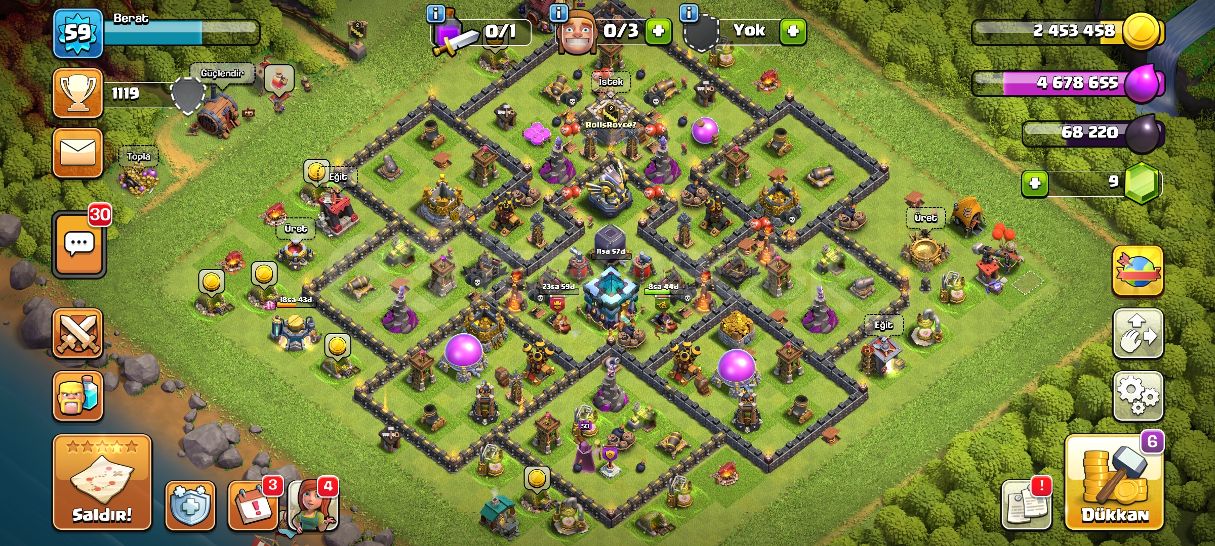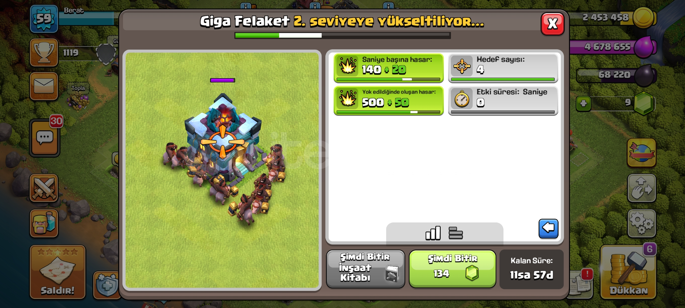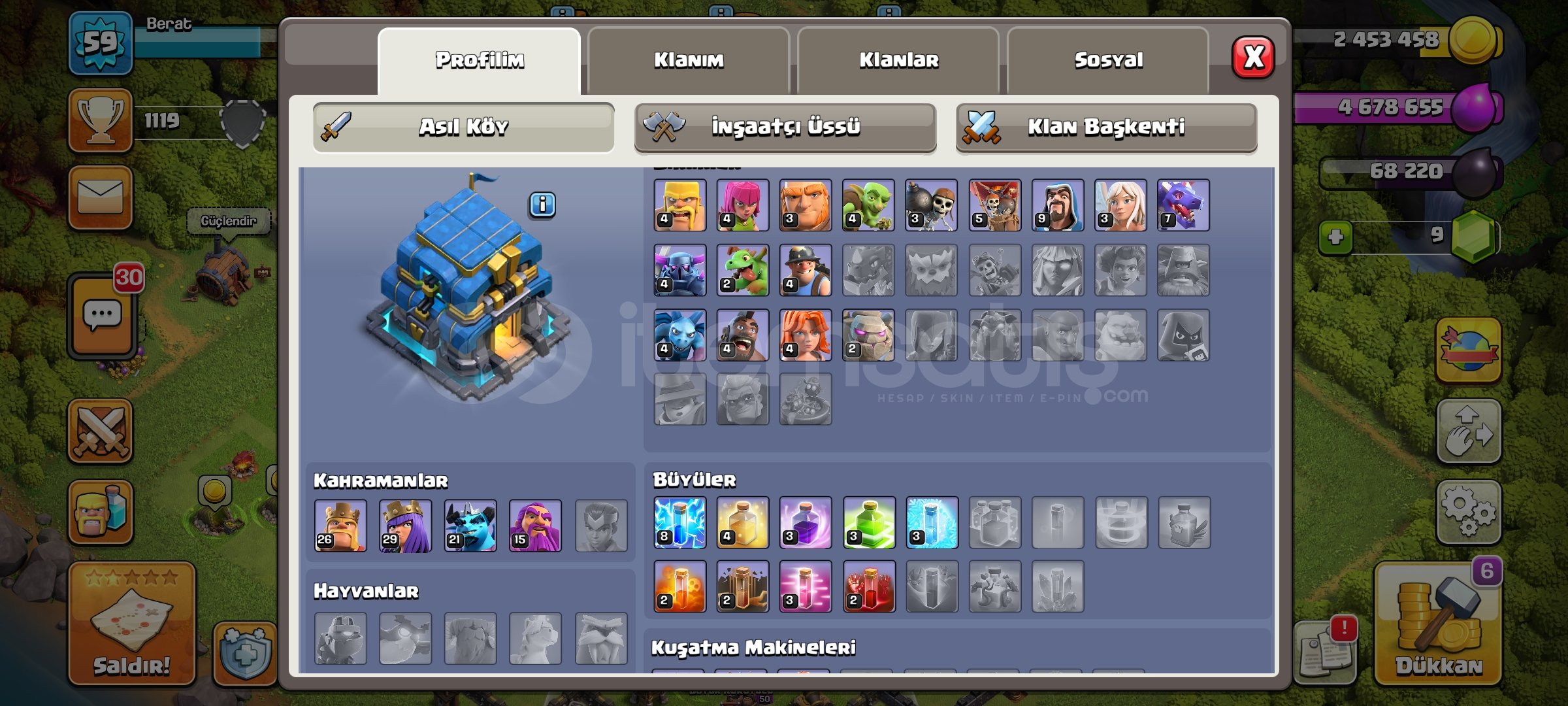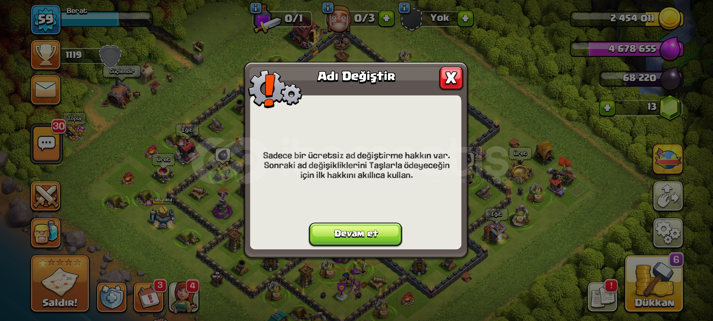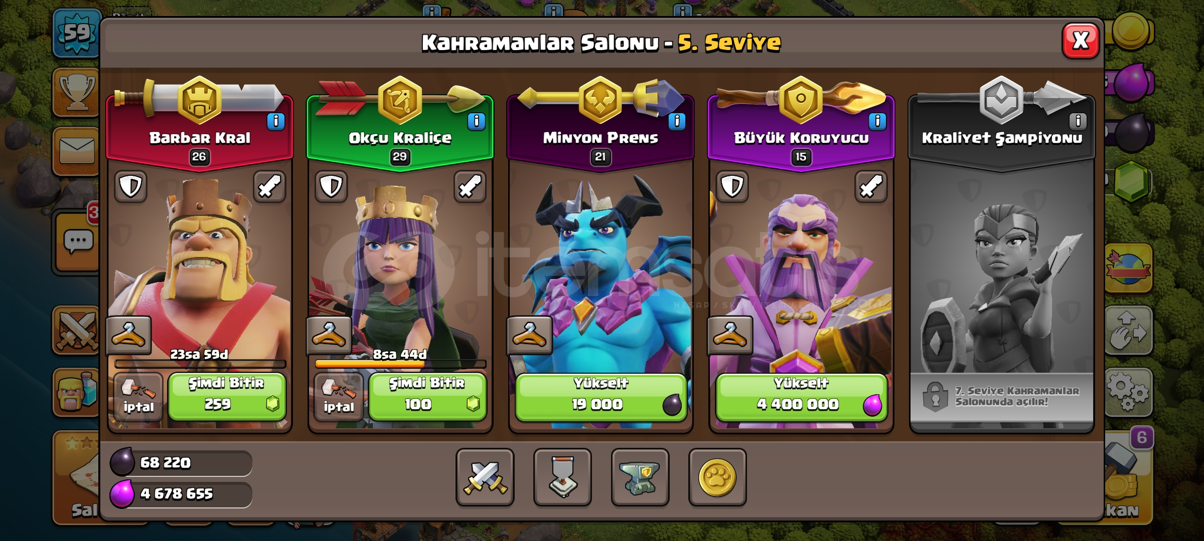 Belediye binası 13 2 seviye yapılıyor59 lvlBarbar kral 27 yükseliyorOkçu kraliçe 30 yükseliyorMinyon prens 21 seviyeBüyük korucucu15 seviyeİşim değişiyorTelefon numarası bağlı değilE posta şifre verilecek
