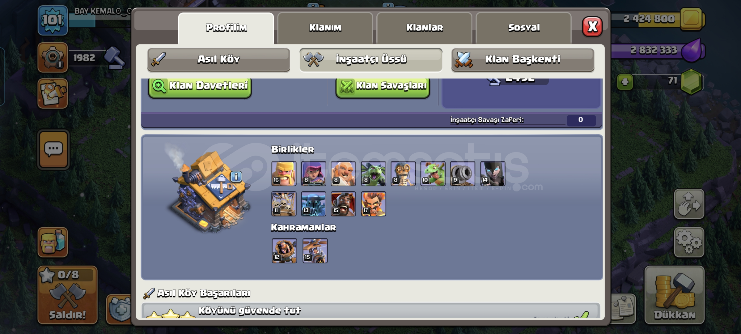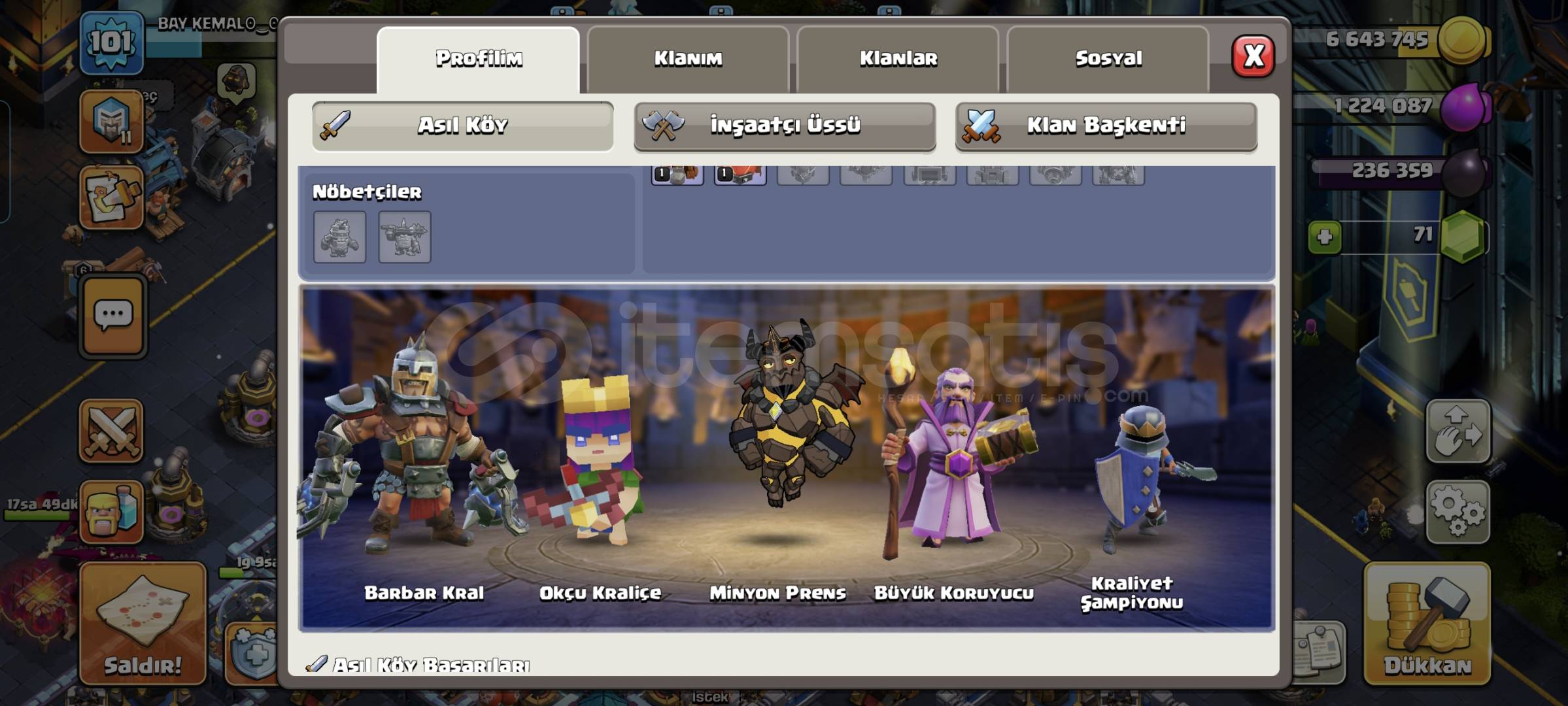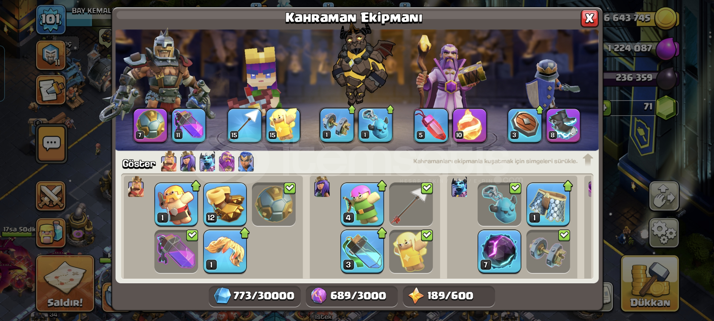 4 Tane kostüm 2 Tane arka planKahram ekipmanları sağlam 5 Tane inşaatçı +1 tanesi alınmak üzere inşaatçı çırağı açıldı 1 levelsimyacı yükseltildiinşaatçı üssü son level belediye binasıMail ve telefon koruması açıktır sizin vereceğiniz maile ve telefon numarasına bağlanıp teslim edilecektir
