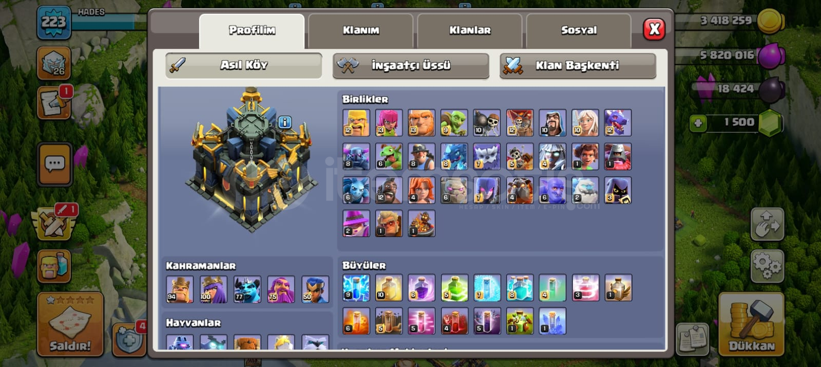 Th17 max a yakın büyülü ögeler dolu hesap