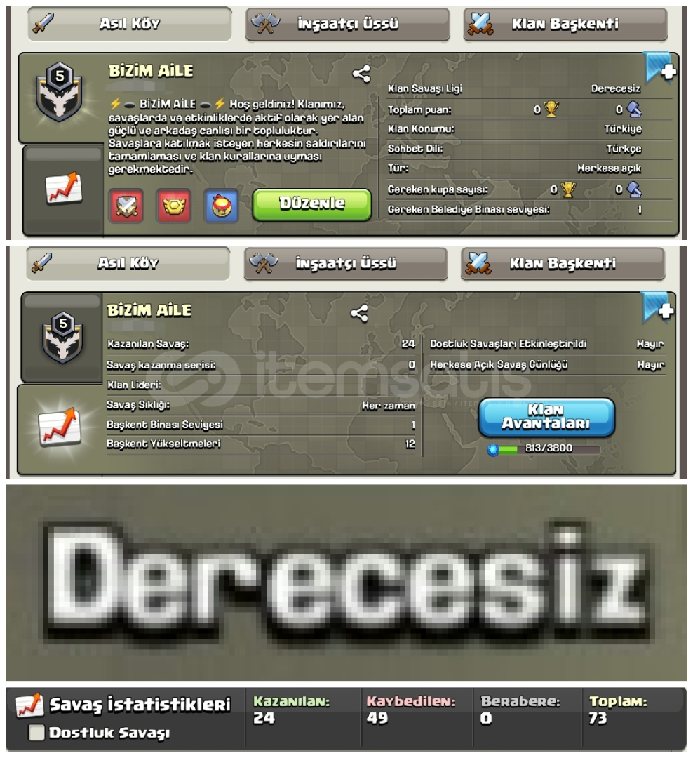 %100 MEMNUNİYET | EN HIZLI ŞEKİLDE TESLİM ⏳|💥10/10 DEĞERLENDİRME PUANI💥🗯️❗ CLASHEVİM ❗🗯️GÜVENCESİYLE EN GENİŞ ÜRÜN YELPAZEMİZLE SİZLERE EN İYİ HİZMETİ SUNMAYA ÇALIŞMAKTAYIZ❗✨ KLAN İSMİ, KLAN SAVAŞ GÜNLÜĞÜ GİBİ TÜM ÖZELLİKLER VE DETAYLAR GÖRSELDE ME...