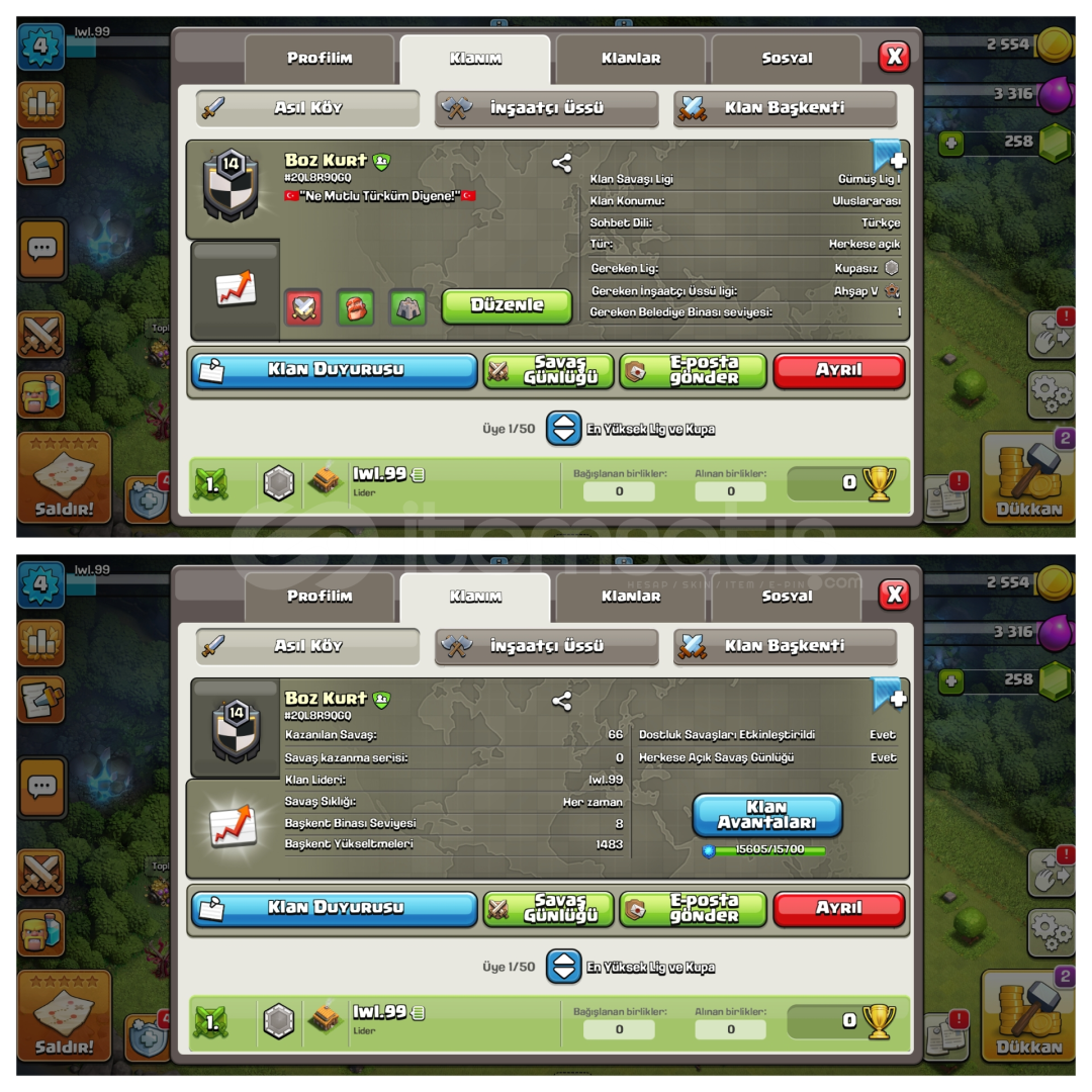 10/10 DEĞERLENDİRME PUANIAÇIKLAMAYI LÜTFEN SONUNA KADAR OKUYUNUZ !HESABIN EK ÖZELLİKLERİ ⚡️ ✨ 15 AZ KALMIŞ• Boz KuRt• Eşi Benzeri Yok !• Harika Savaş Günlüğü• Altın Lig I• Başkent Seviyesi 8• Başkent Yükseltmes 1500• Alıcısına Hayırlı Olsun- Her Zaman En İyi Şekilde Hizmet Vermeye Çalışıyoruz. A...
