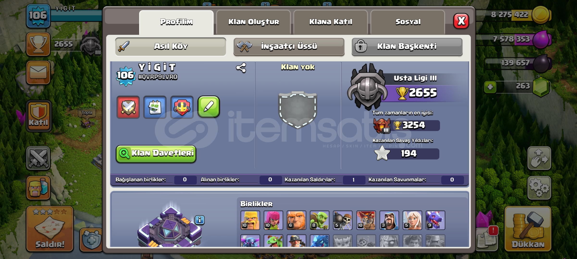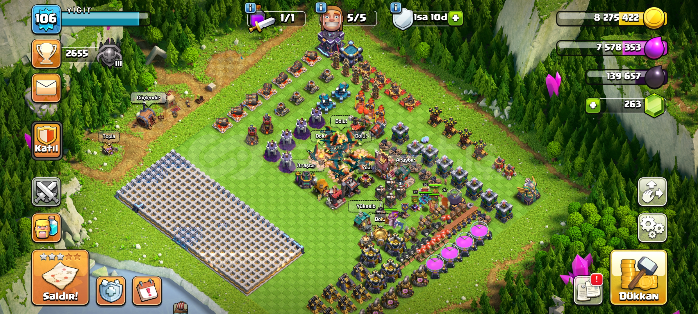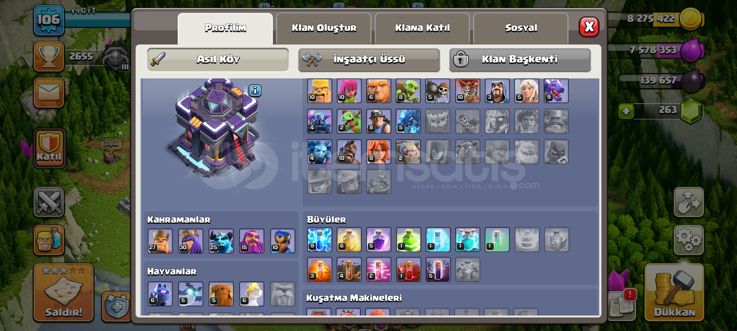 2655 kupa 263 elmas 8 milyon altın ve 7 milyon iksir 140 bin kara iksir Belediye binası 15 3 yıldız Hesap kasılmaya devam ediyor Daha fazla bilgi için Mesaj indirim olur