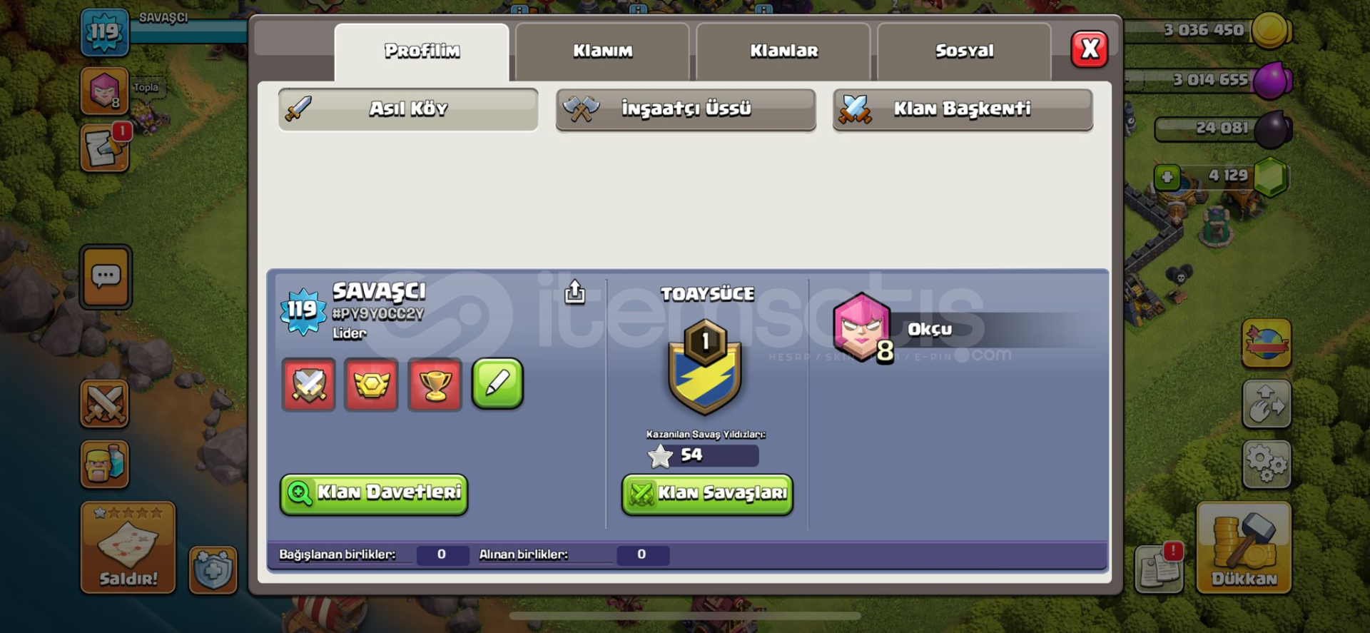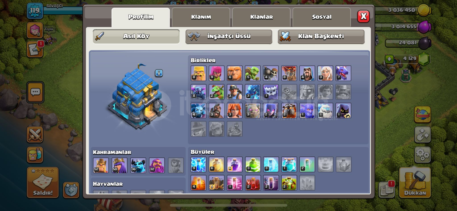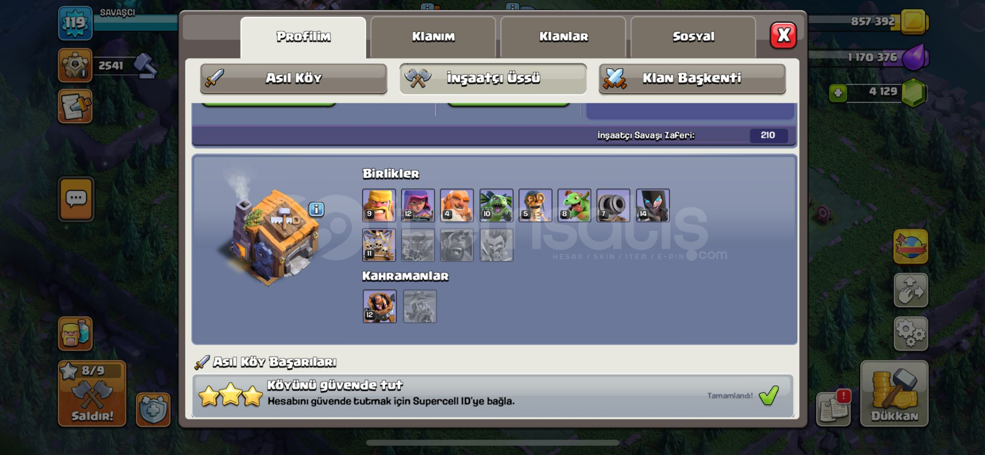 Clash Of Clans | 119 LVL BB12 4129 taşlı hesapdiyer Clash Of Clans ilanlarıma göz atabilirsinizİyi Alışverişer Dileriz....
