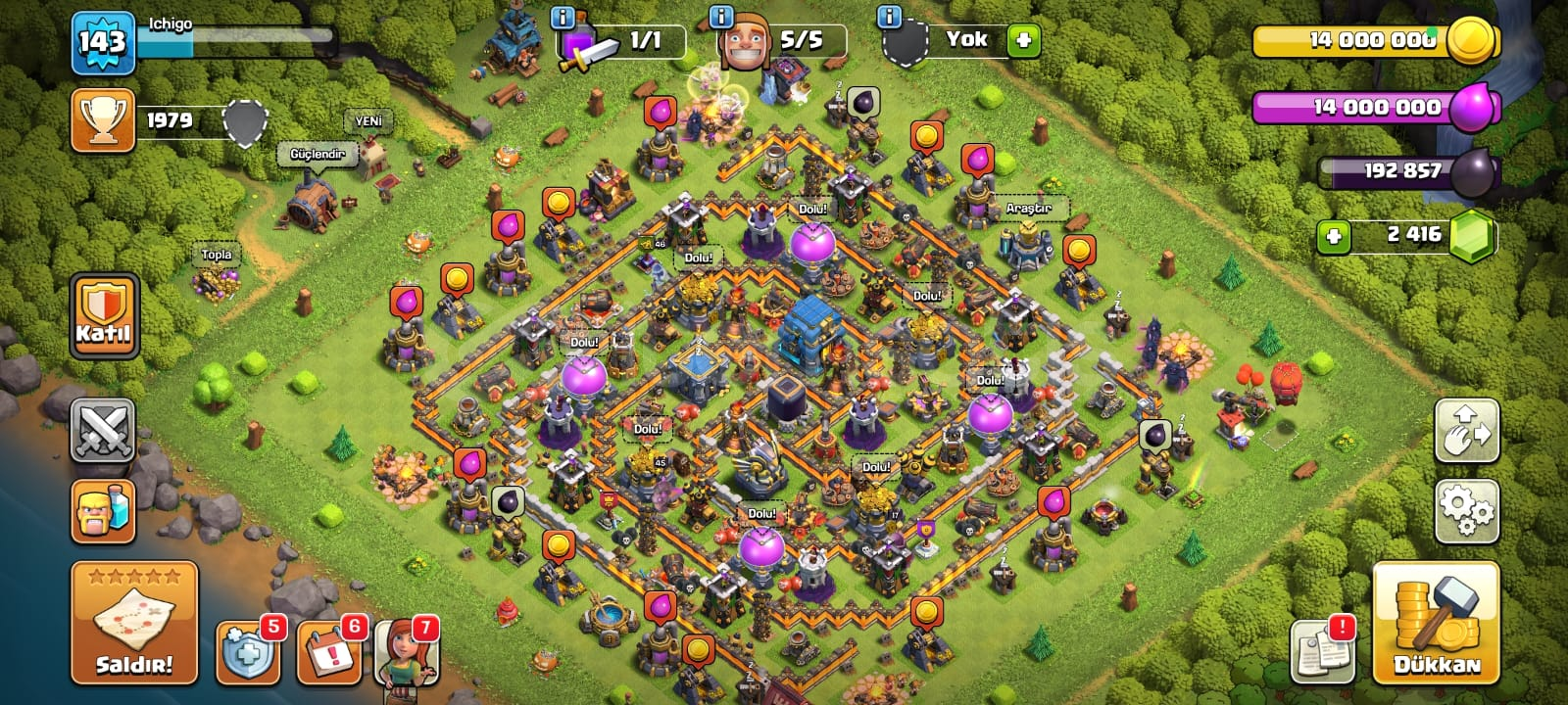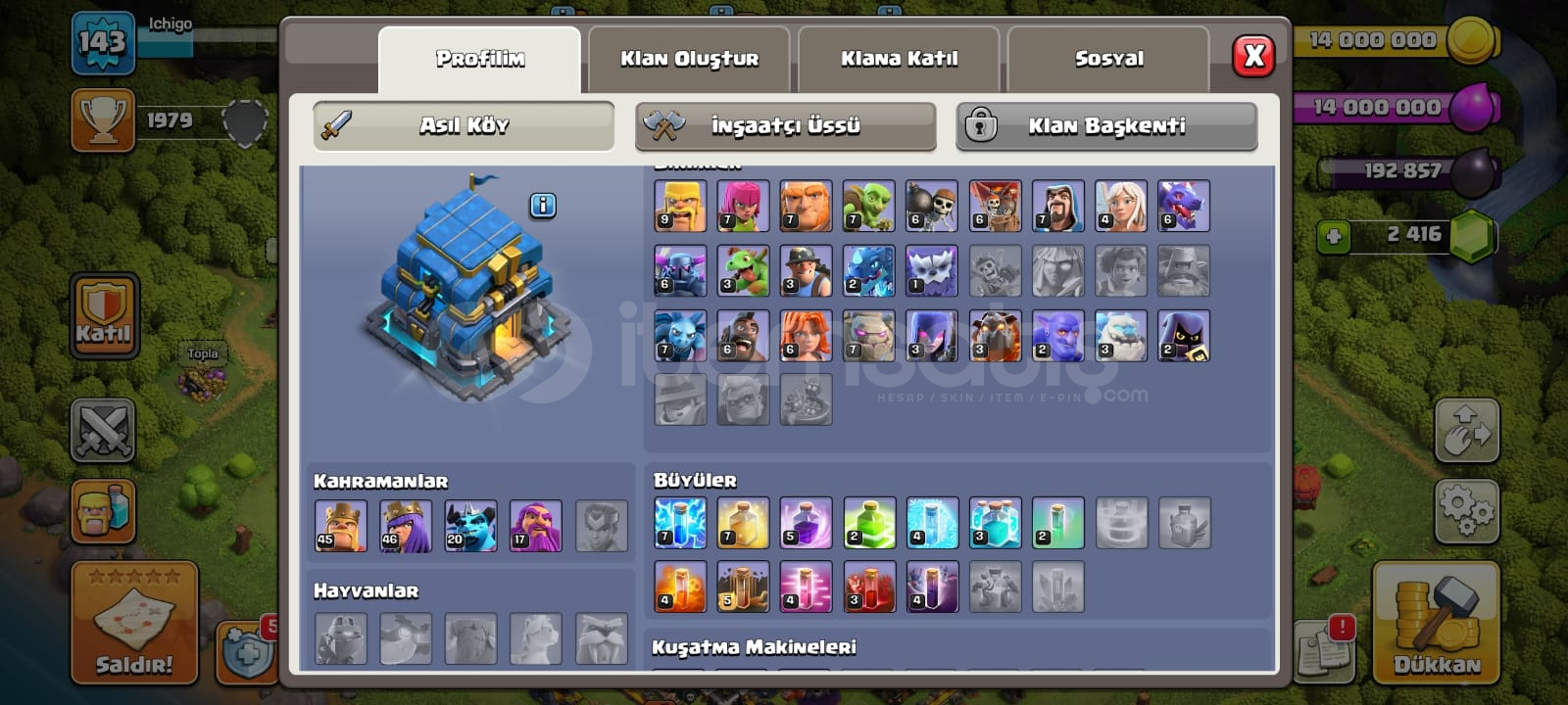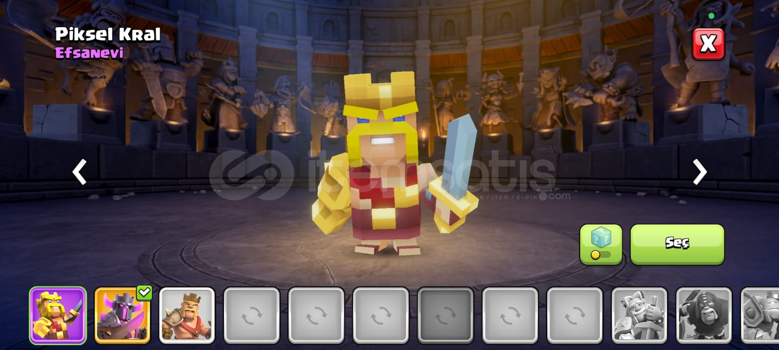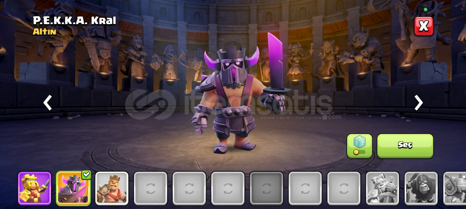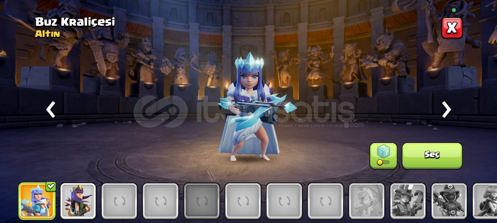 *2500 taş*524 lig puanı*PEKKA kral skini*Buz kraliçesi sikini*Piksel kral skini