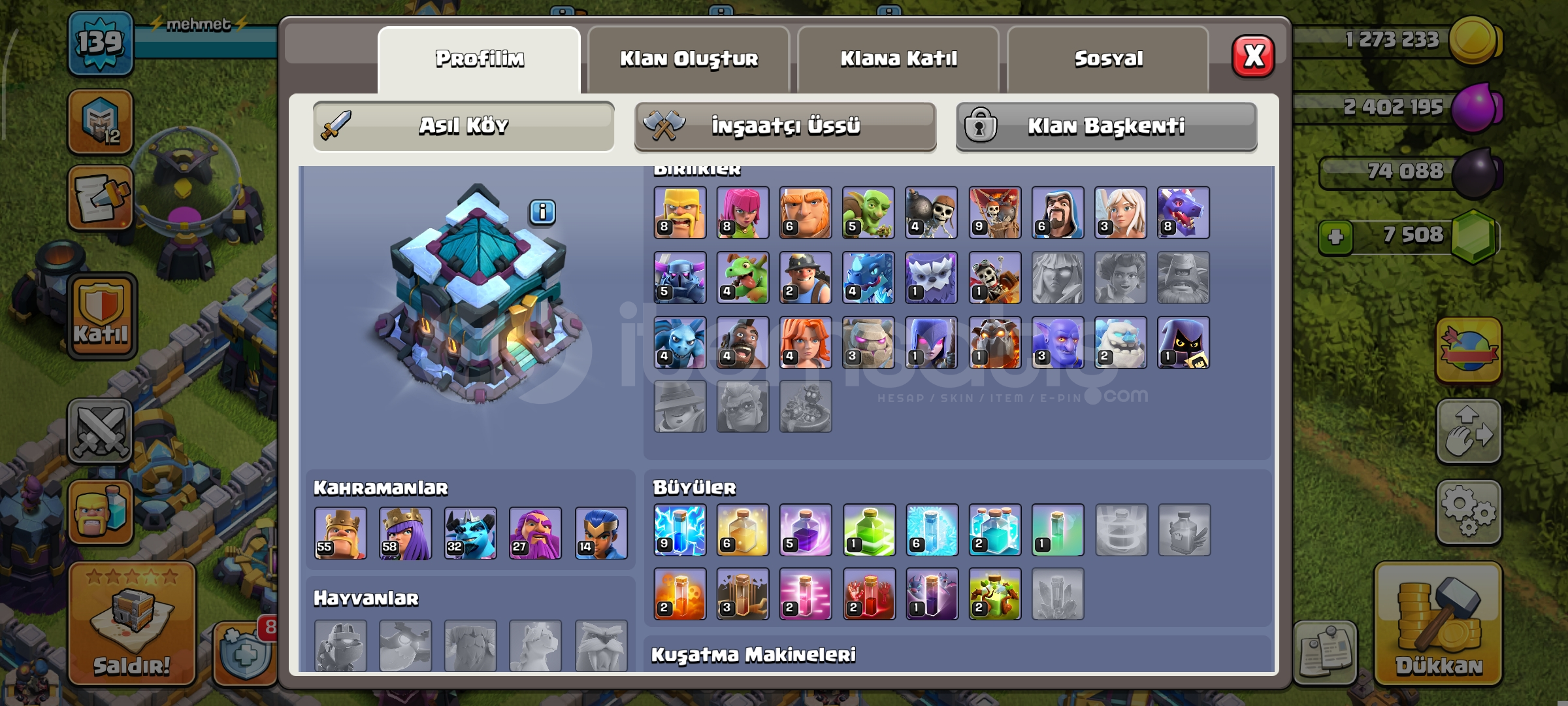 139 svy hesap 7500+ elmas ki bu bile 1100 TL falan 13 bb köy 6 svy yan köy pazarlık payı var