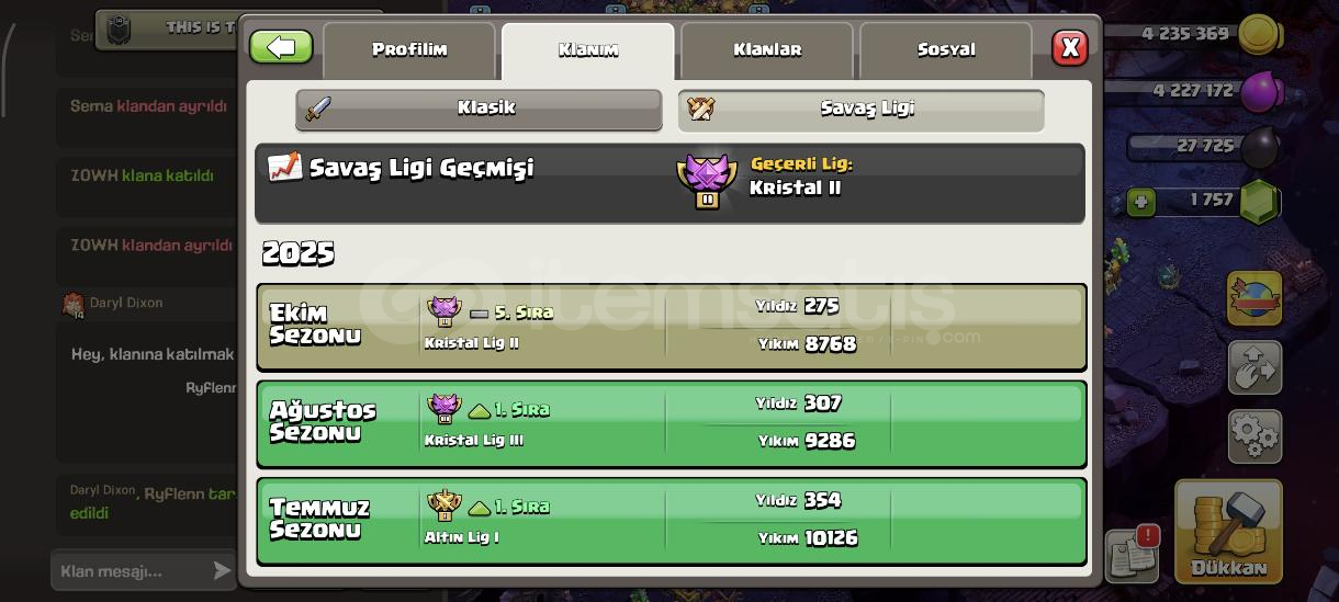 Klan 15 seviye olamak üzeredir.1 yıllık kılandır aile ortamı vardır.Klan Kristal 2