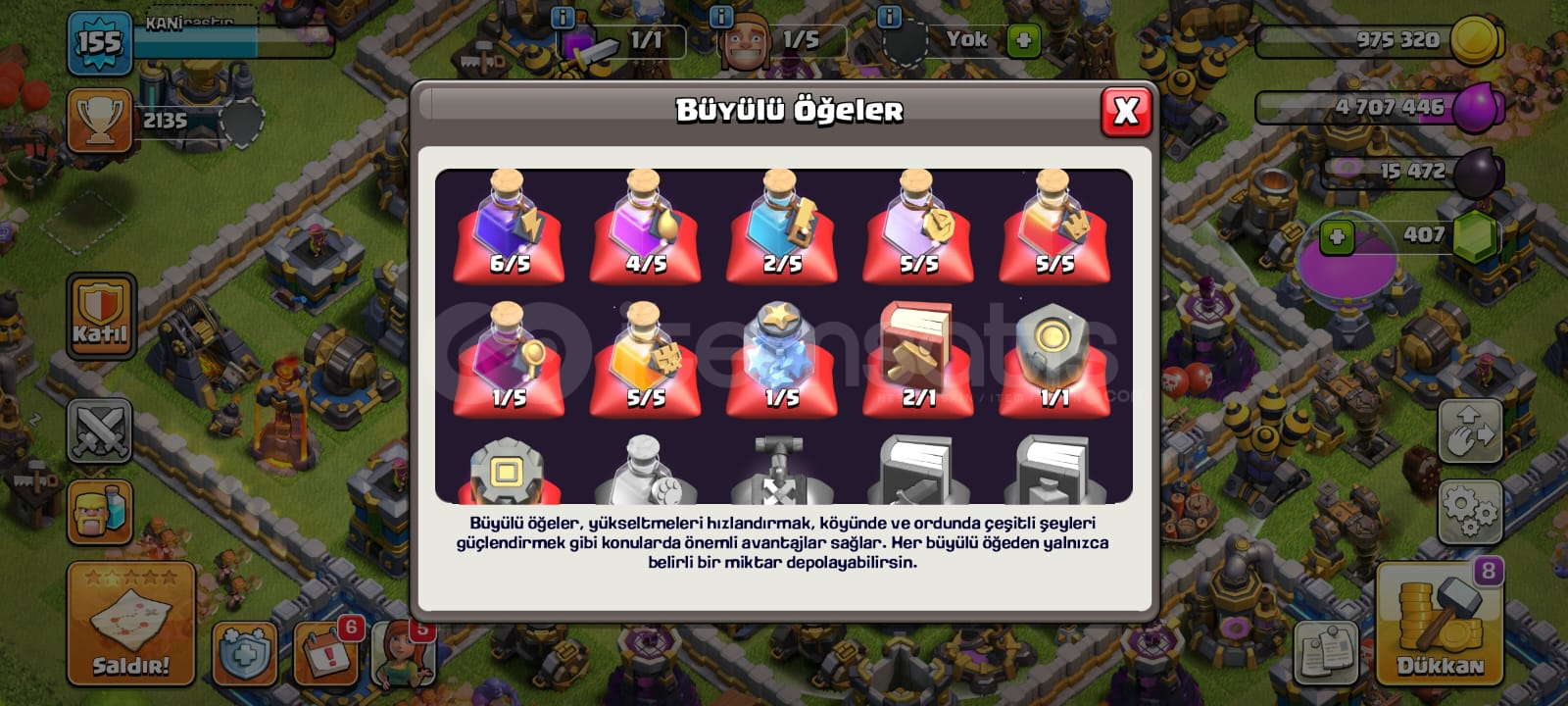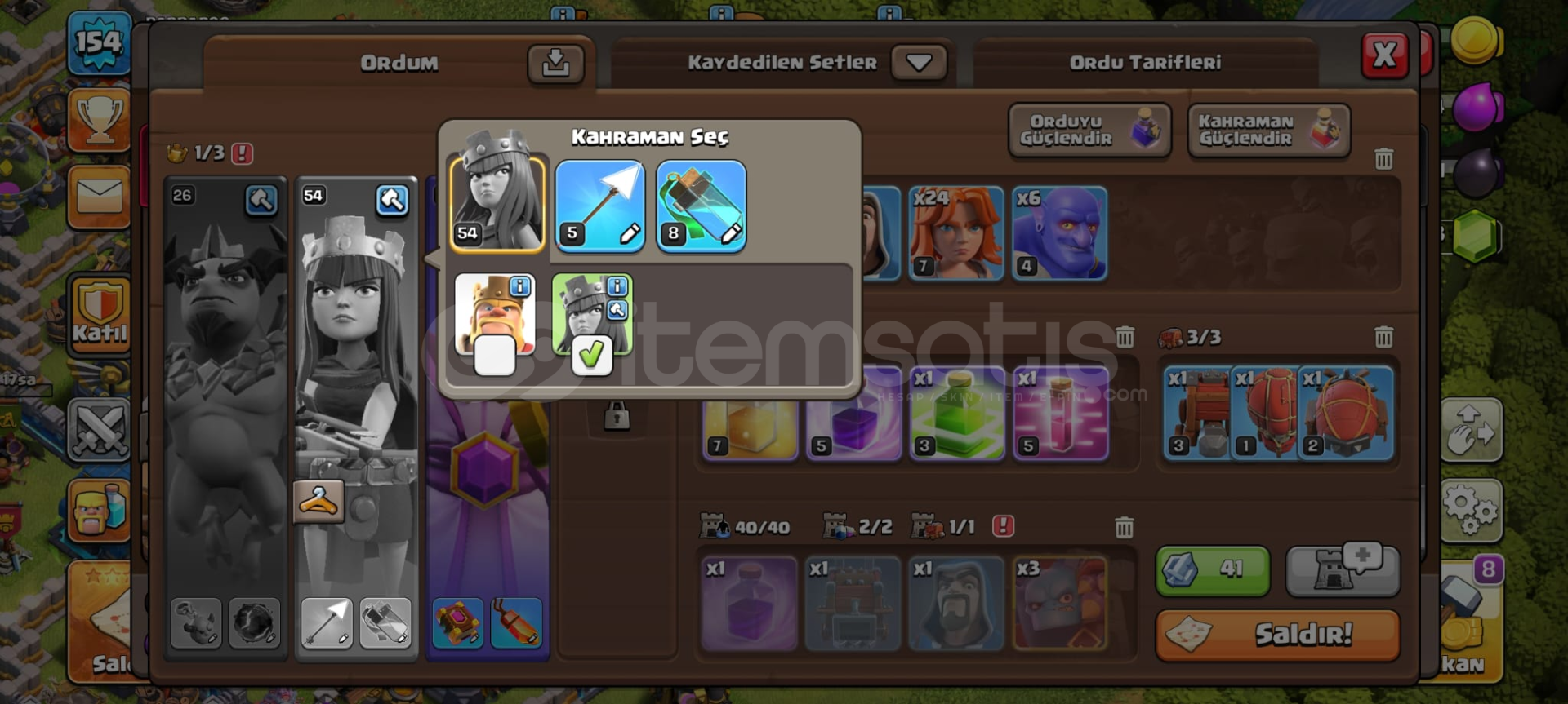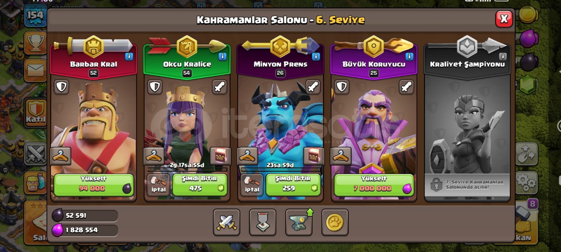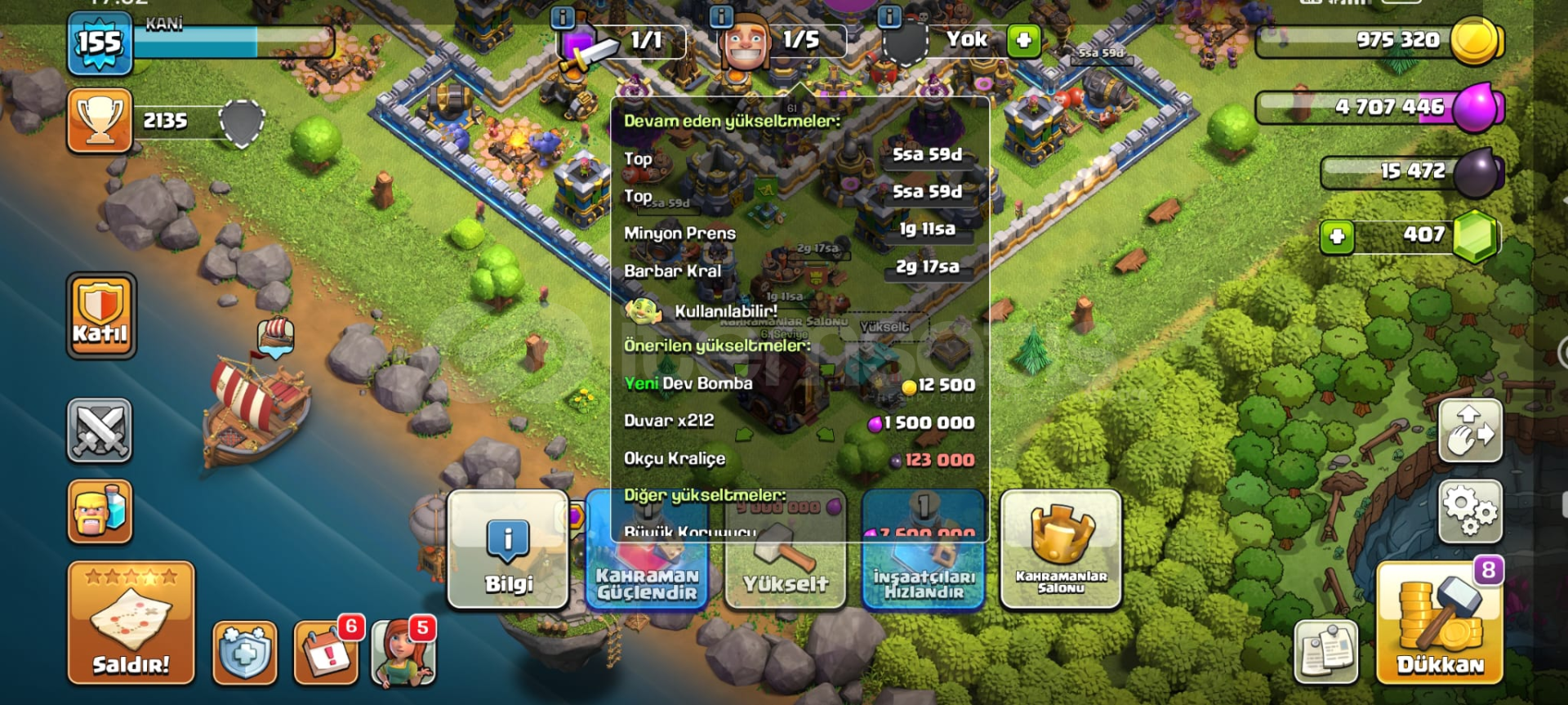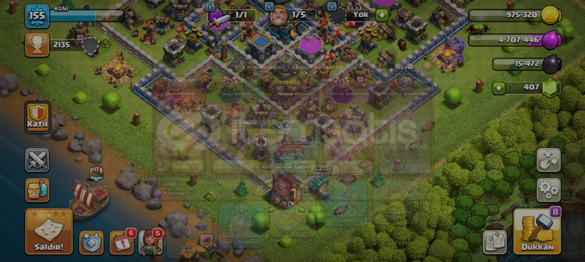 Clash Of Clans Dolu ve Kaliteli Hesap155 Level,2135 Kupa,54 Level Okçu Kraliçe52 Level Barbar Kral,26 Level Minyon Prens24 Level Bü...