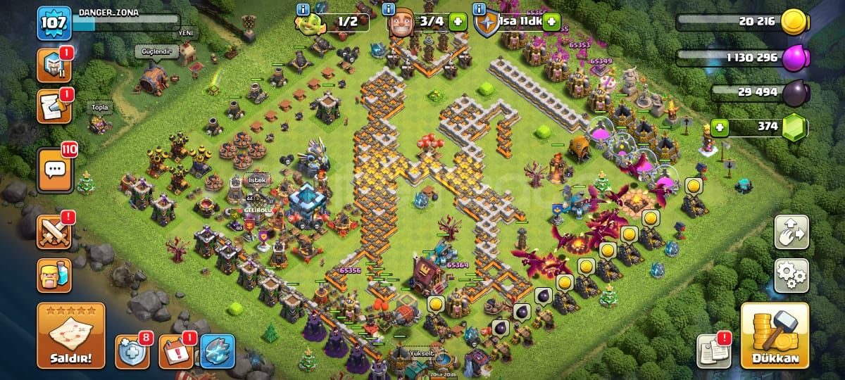 Sahibindan ucuz 107 lvl Clans of Clans hesabi 374 yeşil taş Kral 40 lvl Kralice 44 Büyük koruyucu 17 Şampiyon 7 lvl