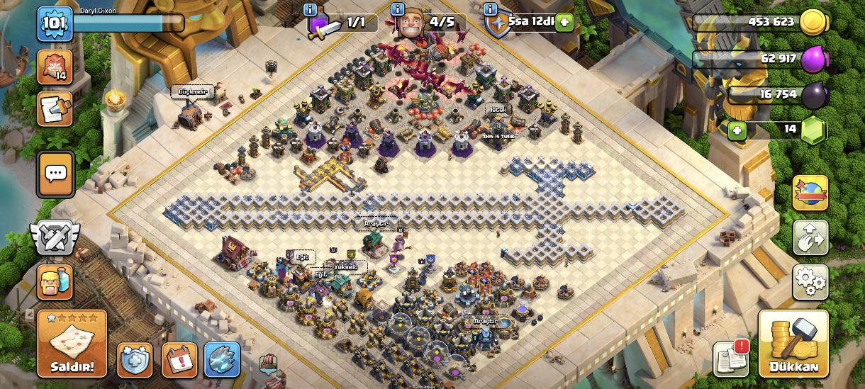 Mısır Arka Planı vardır.Kuzeyin Kralı ve Süper Takım Kralı Kostümü vadır.5 inşaatçı 14 elması vardır BB14 yeni geçilmiştir.