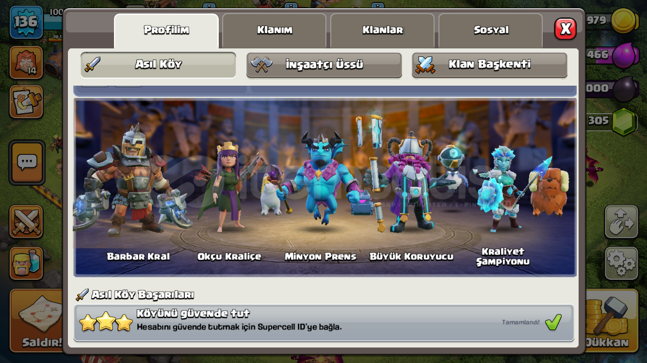 Karlı arkaplanlı Altın Pass Li Efsane Barbar kral Skinli mükemmel hesapBelediye Binası 15 Mükemmel skinli hesap