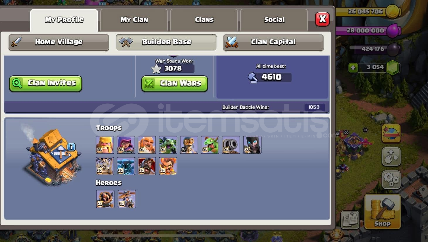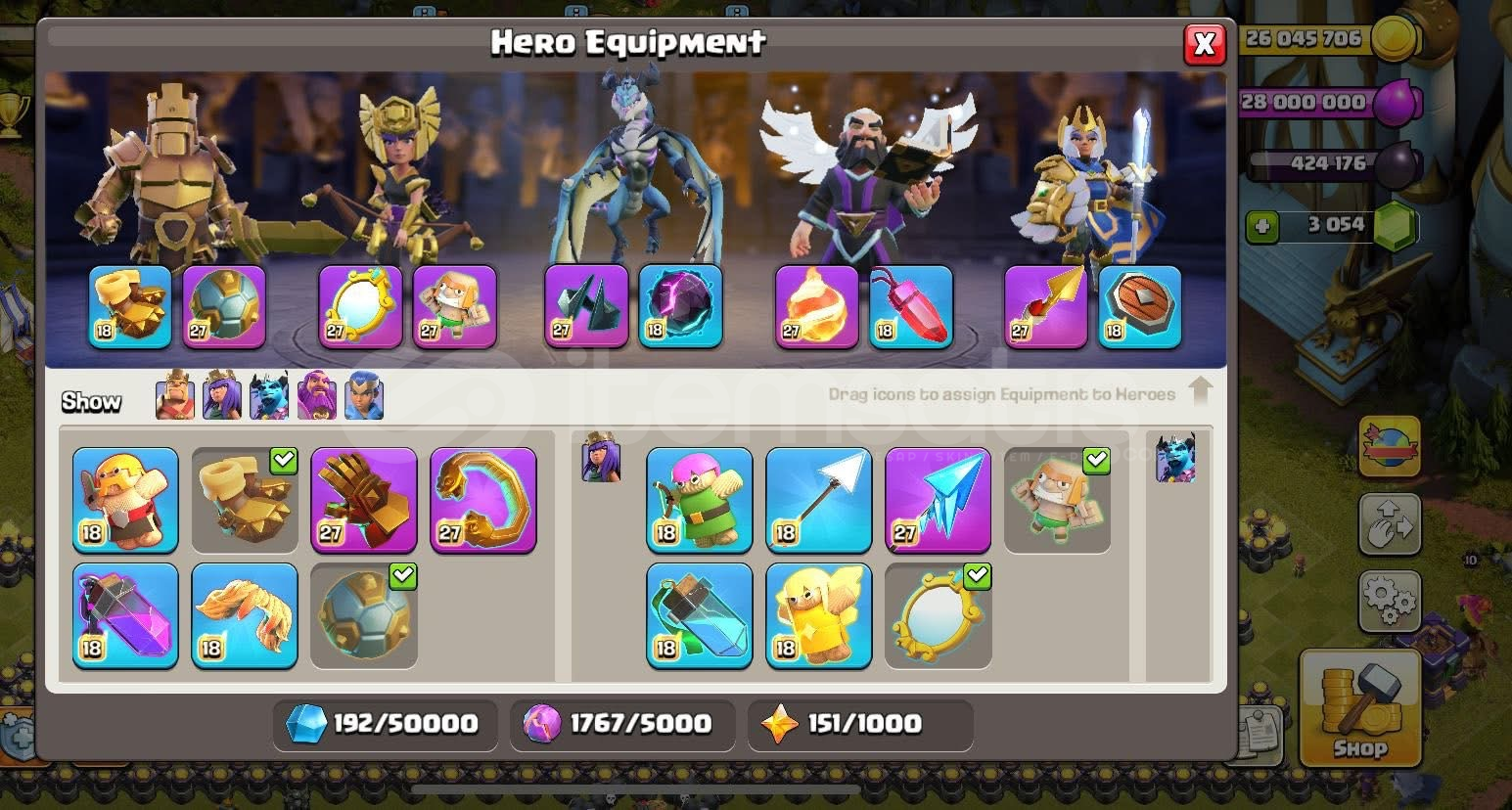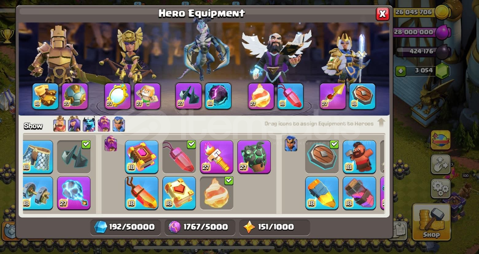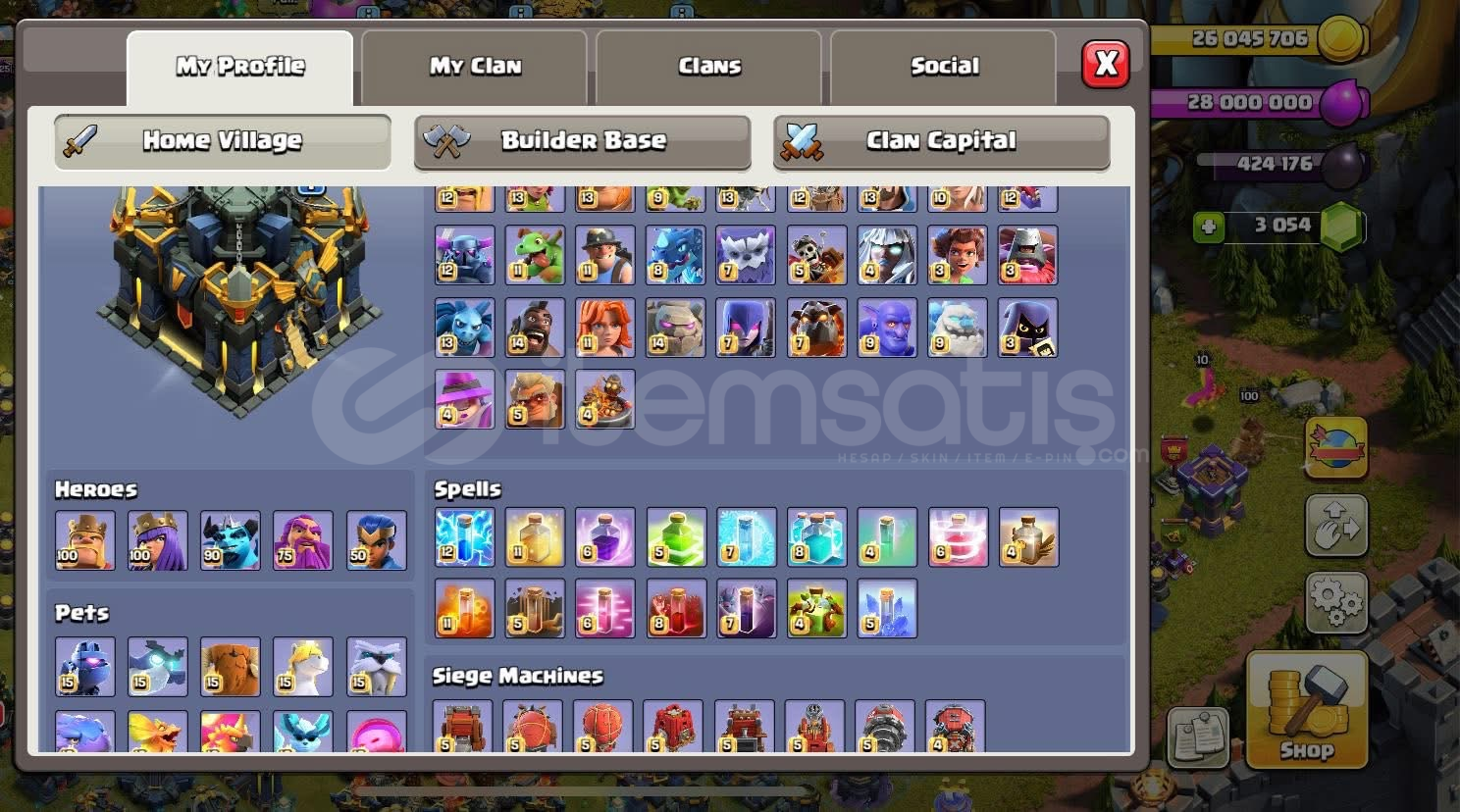 * HER ŞEY MAX(Savunma,asker,ekipman,yan köy)* Efsanevi arkaplan + lig kralı + lig arkaplanı + 1850 lig madalyası*Dekorasyonları dolu doluKısaca her şey son seviye, ölücüler uzak dursun daha iyisi herkese nasip olsun.
