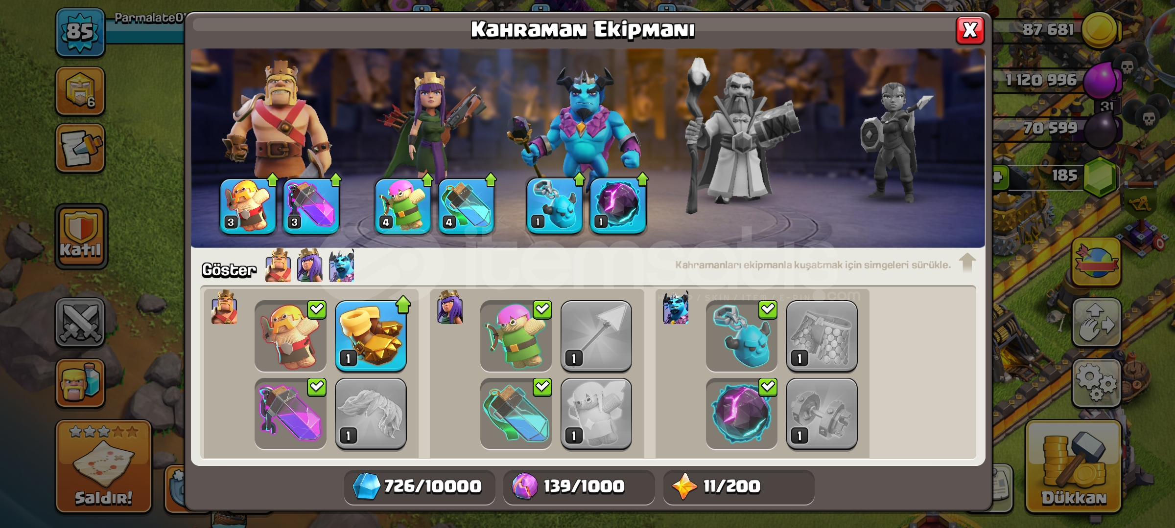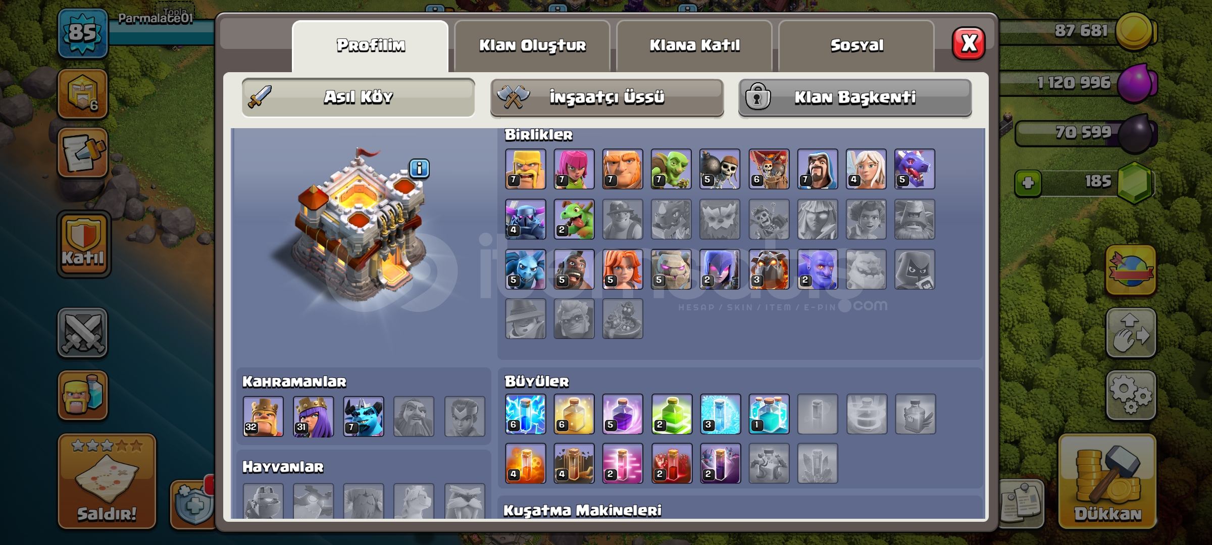 BB11 hesap klan savaşı, lig savaşı, hafta sonu baskınları için ideal hesap fiyat ucuz aldın aldın şimdiden hayırlı olsun