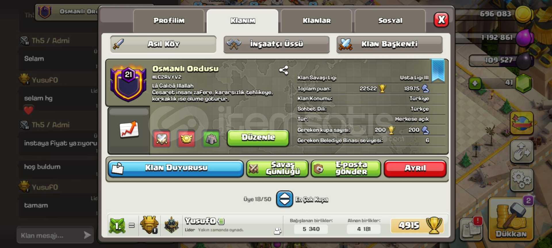 Mükemmel isimli klan 21 level Osmanlı ordusu