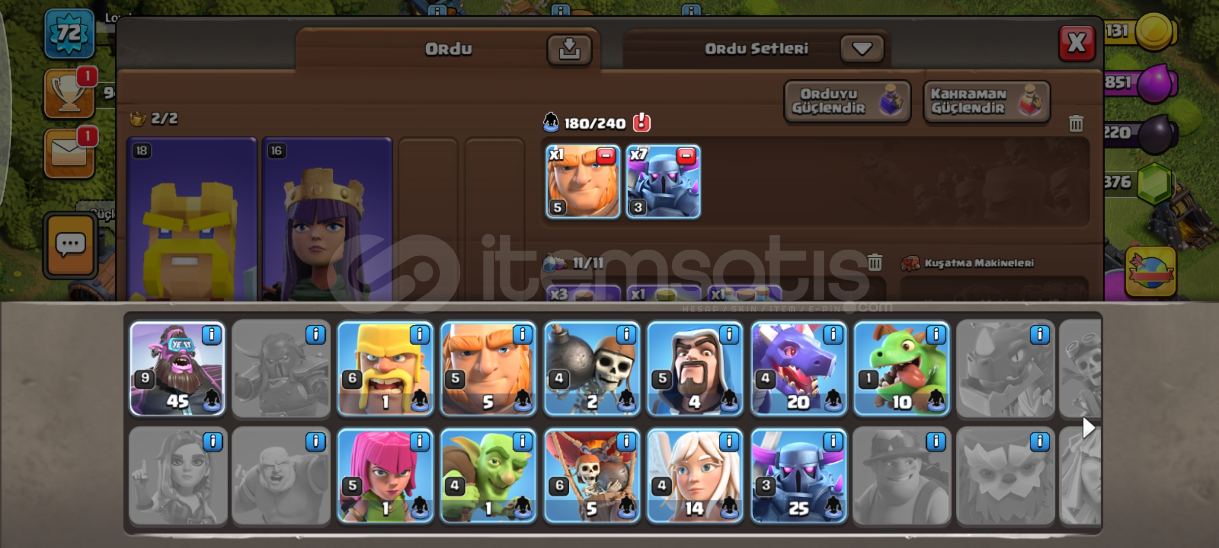 Clash of Clans dolu hesap uyguna hesap değeri biraz düşük oradan fiyat düştüm hesap alındıktan sonra anında satın alan kişiye e posta ile teslim edilir alan kişiye hayırlı olsun
