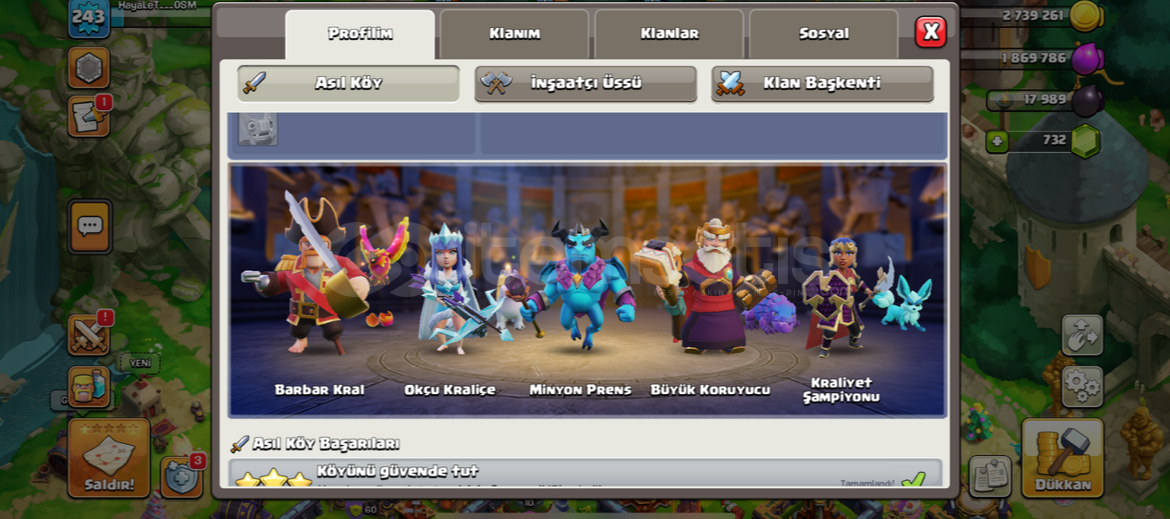 243 level yüksel seviyeli kostümlü arka planlı yaklaşık 2500savaş yıldızlı köy kostümlerden ikişer üçer tane var acil satılık !!!!