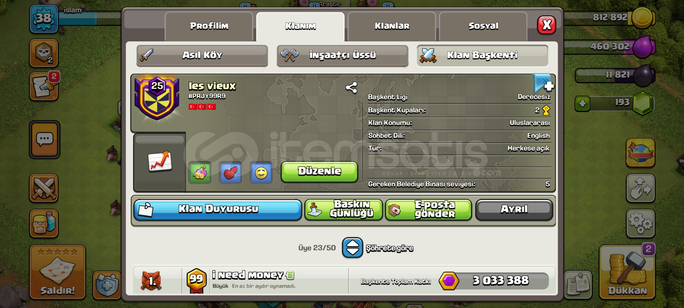 CLASH OF CLASH 25 SEVİYE KLAN EN UYGUN FİYATA VE HİZLİ TESLİMAT ALİCİYA SİMDİDEN HAYİRLİ OLSUN
