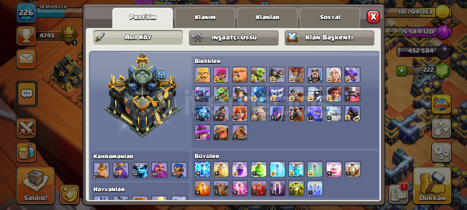 10 yıllık bir oyuncu olarak 226 level17 seviye Belediye binası ile Birlik seviyelerinin En üst düzeyde olması ile birlik...