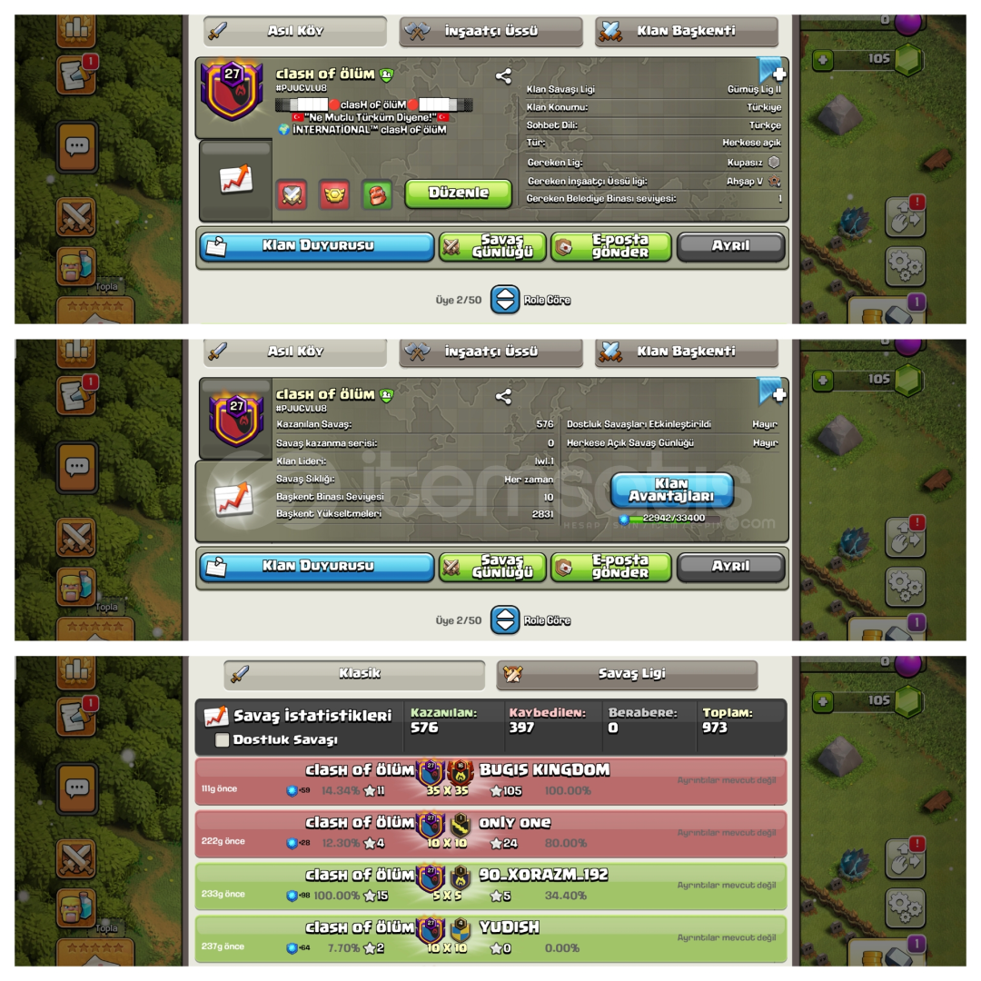 %100 MEMNUNİYET | 1 DAKİKADA TESLİM ⏳|10/10 DEĞERLENDİRME PUANIAÇIKLAMAYI LÜTFEN SONUNA KADAR OKUYUNUZ !HESABIN EK ÖZELLİKLERİ ⚡️✨28 Level Klanım• clasH of ölüM• Harika Savaş Günlüğü• Kristal Lig lll Savaş Ligi• Başkent Seviyesi 10• Başkent Yükseltmesi 2500• Görsellerde Belirtilmiştir.• Alıcısına Hay&...