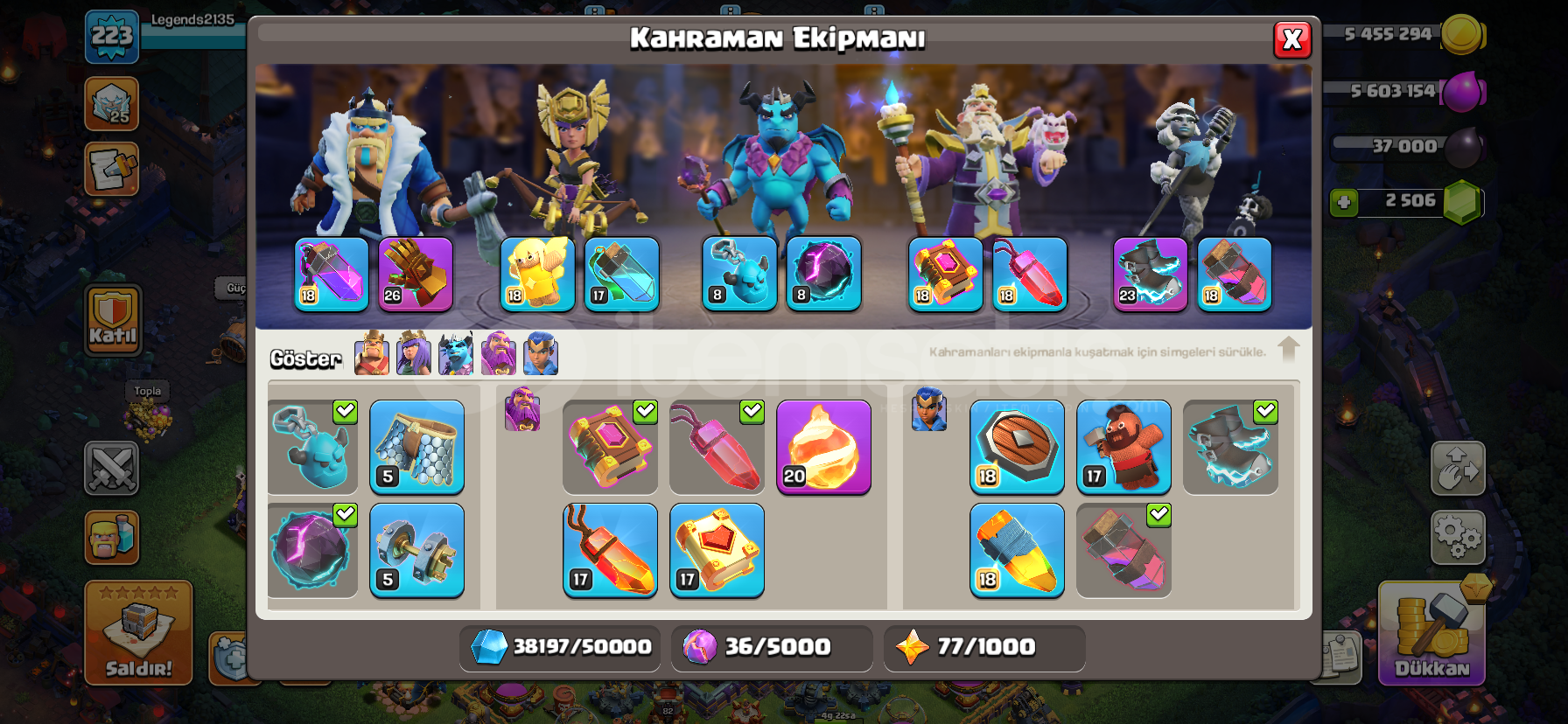 COC/CR/BS/ ”3.oyun tek mail”HESAP DETAYLARI:COC;223 level,17th,2400 gems,ağır savunma maks.OKÇU KRALİÇE:95 levelBARBAR KRAL:82BÜYÜK KORUYUCU:70KRALİYET ȘAMPİYON:42MİNYON PRENS:60HAYVANLAR:ÇOK İYİ SEVİYEEKİPMANLAR:İYİ SEVİYEHESAP:YÜZDE 75 MAKS.BS:94 KARAKTER250+KOSTÜM68K.KUPAKARAKTER YARISI SON SEVİYE VE HİPERSARJ.CR:9K.KUPA1000gems.48 SEVİYE.KAREKTER,OKÇ...