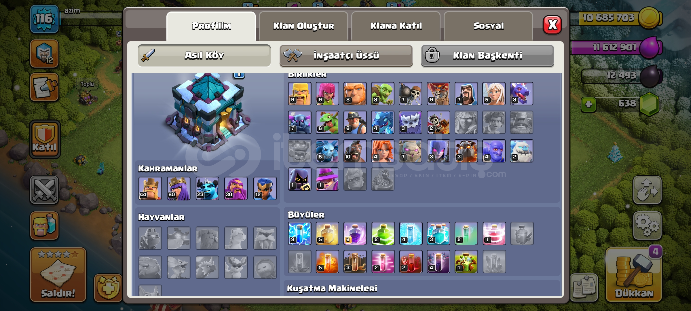 CLASH OF CLANS BB13 PAS AÇIKTIR EMEK HESABIDIR GÜZEL SKİNLER MEVCUT 116XP VERDİĞİM PARAYA DEĞİYOR SATIN ALDIĞINIZDA TESLİM EDİLECEKTİR