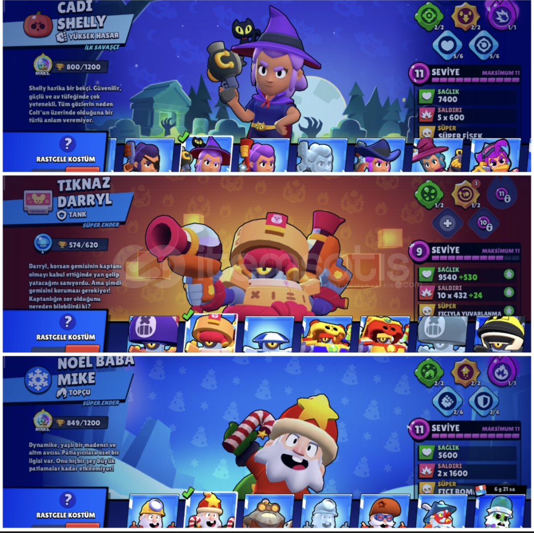 Bs hesabı cadı shely baykuş shely ve Noel Baba Mike var CR hesabı bilgi için yazın 3 oyun hesabı aynı maile bağlı o yüzden birlikte satıyorum