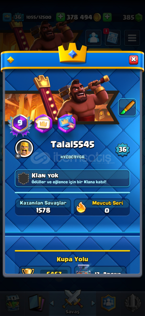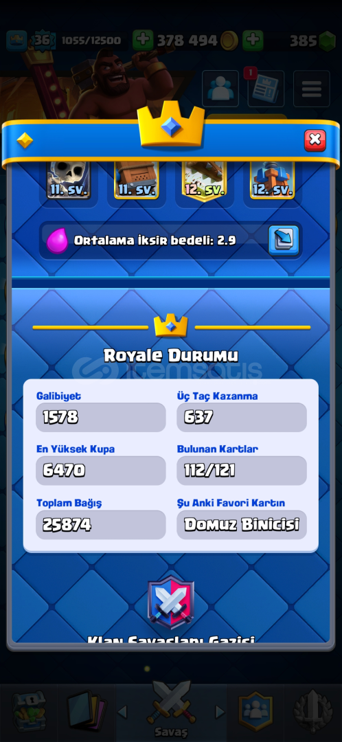 Clash Royale hesabı neredeyse full hesap özellikle oynadığım kartları yükseltmiştim.