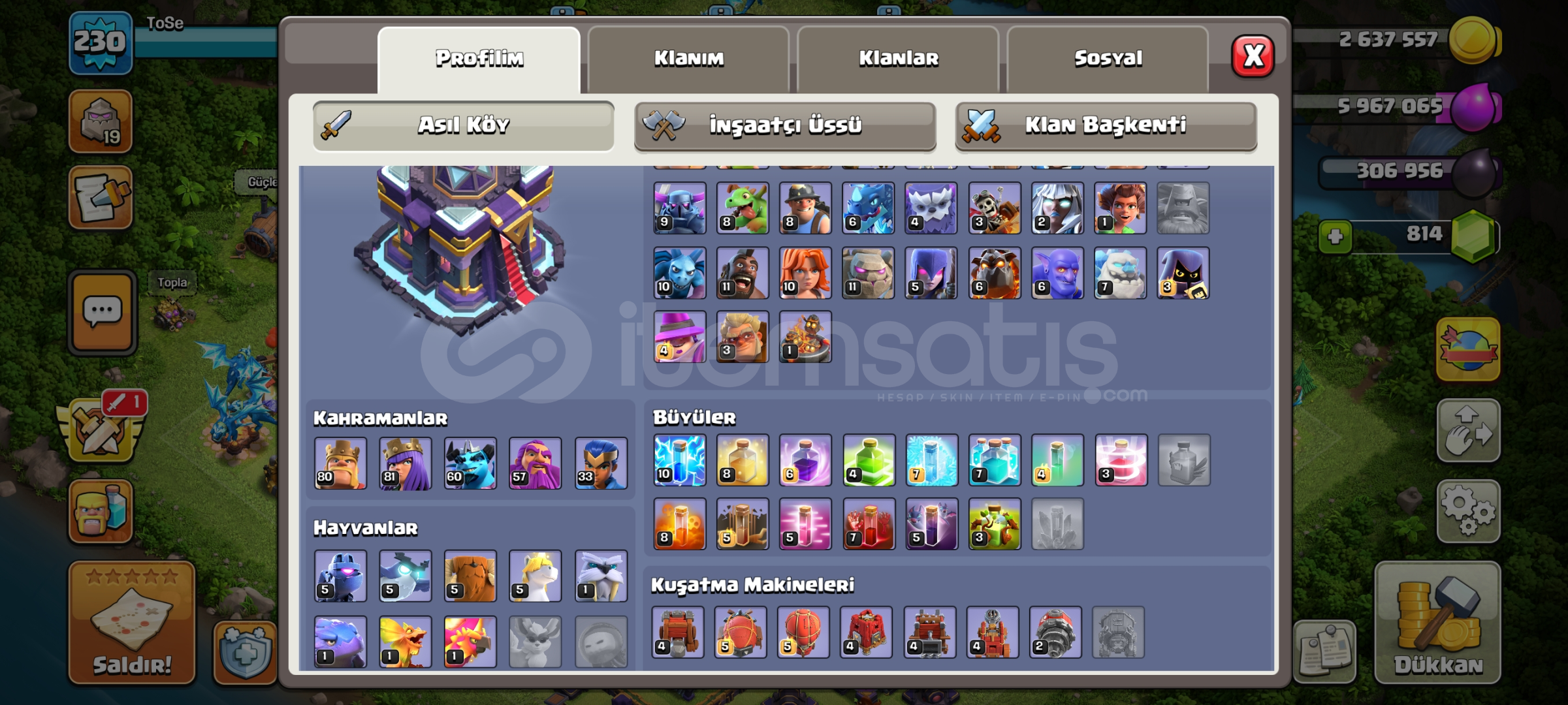 COC THOR 15 MAX+MAX 6 İNSAATCİLİ SAVUNMA DAHİL HERSEY MAX SUPERCELL ID DEGİSİLİP ALİCİNİN UZERİNE YAPİLACAKTİR ALİCİSNA SİMDİDDEN HAYİRLİ OLSUN