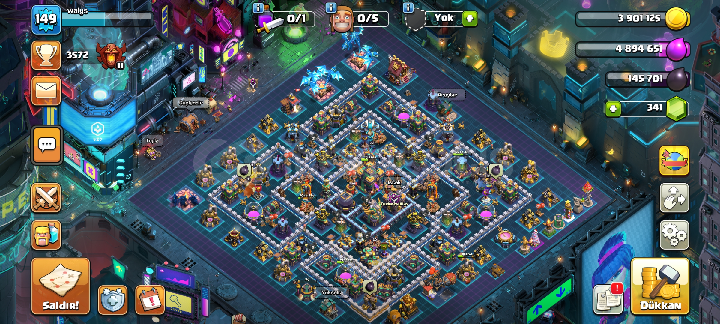 COC THOR14 DUVARLAR HARİC MAX HESAP 6 SKİN VE ARKA PLANLİ EN UYGUN FİYATA