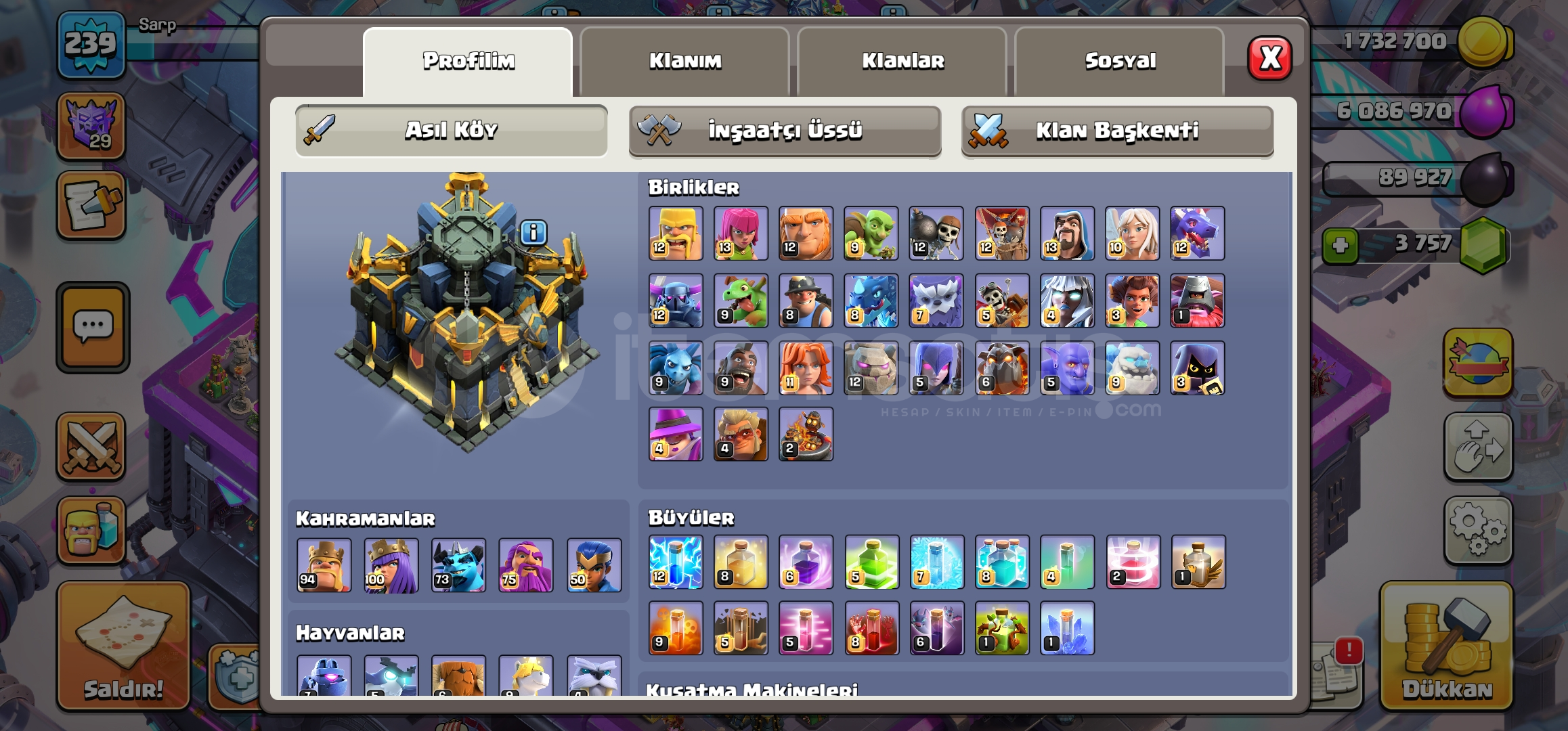 Hesabım göründüğü gibidir paraya ihtiyacım olduğu için satıyorum pazarlık vardır klan sa...