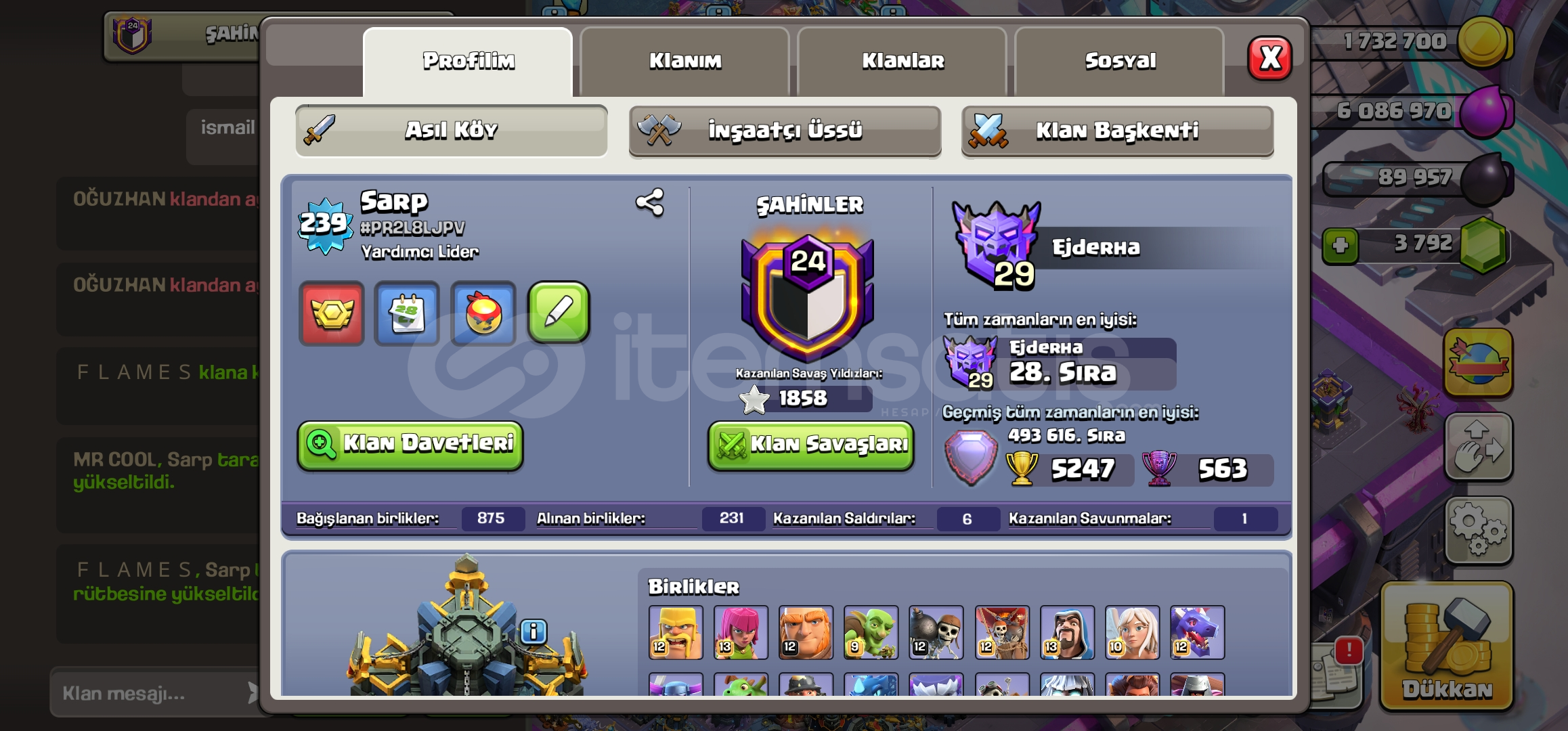Hesabım göründüğü gibidir paraya ihtiyacım olduğu için satıyorum pazarlık vardır klan sahibi de benim isteyen e klani da satarım klan ucreti oyun hesabına dahil edilmemiştir