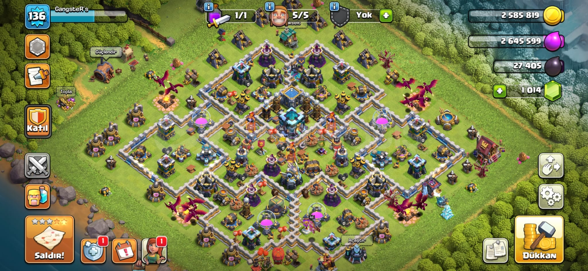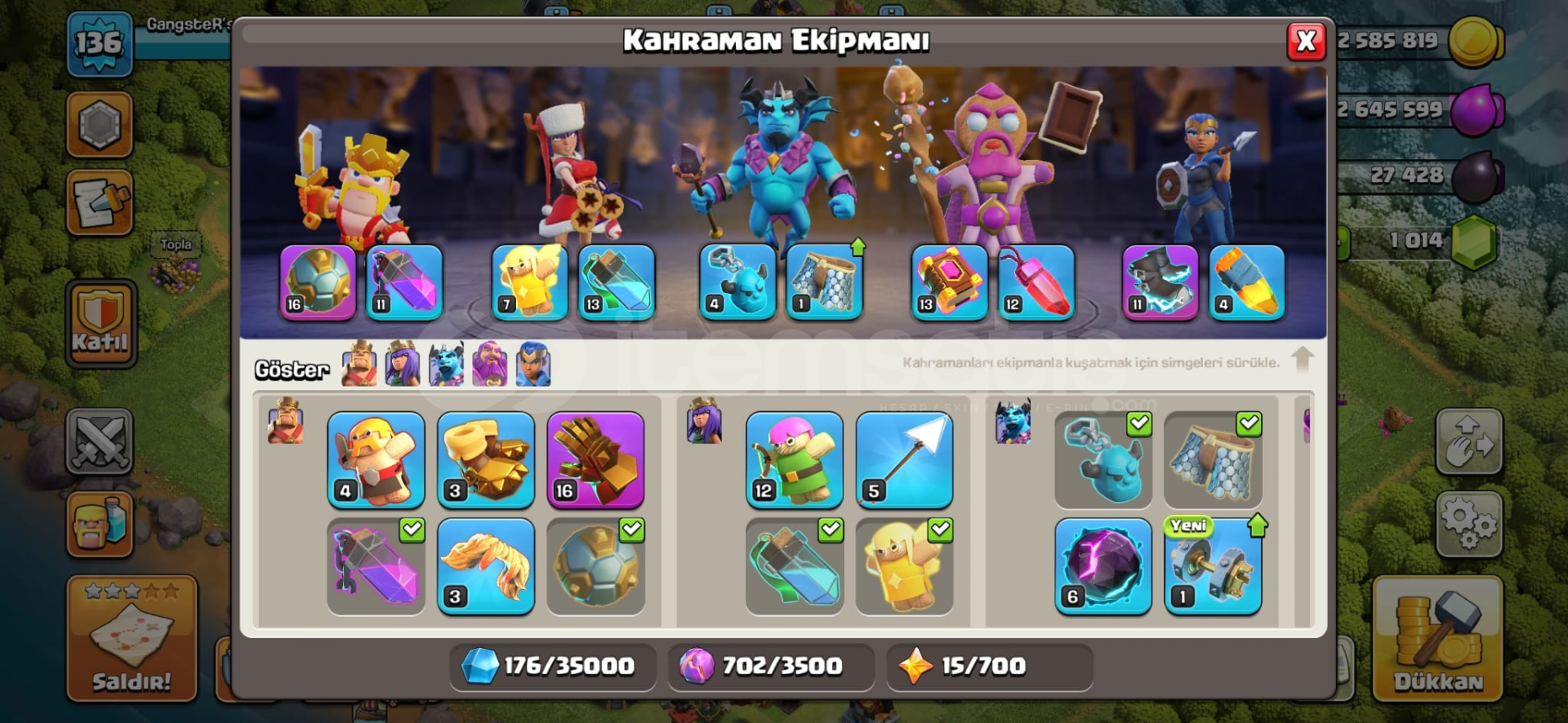Çok Ucuz TH13 MAX 1K TAŞ + Clash Royale Hesabı