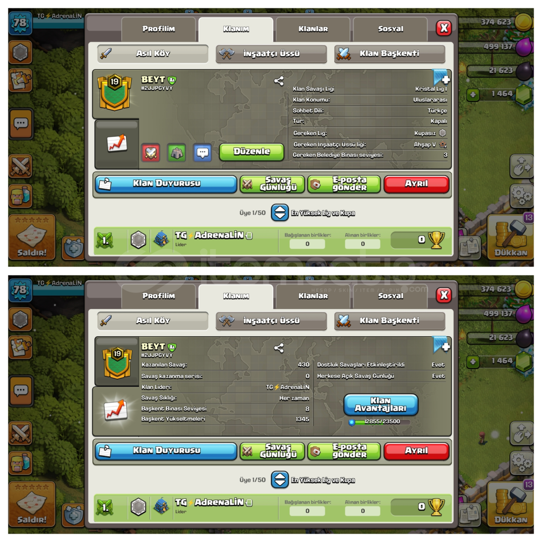 %100 MEMNUNİYET | 1 DAKİKADA TESLİM ⏳|10/10 DEĞERLENDİRME PUANIAÇIKLAMAYI LÜTFEN SONUNA KADAR OKUYUNUZ !HESABIN EK ÖZELLİKLERİ ⚡️ ✨19 Level Klanım • BEYT• Harika Savaş Günlüğü• Kristal Lig lll Savaş Ligi• Başkent Seviyesi 8• Başkent Yükseltmesi • Görsellerde Belirtilmiştir.• Alıcısına Hayırlı Olsun- H...