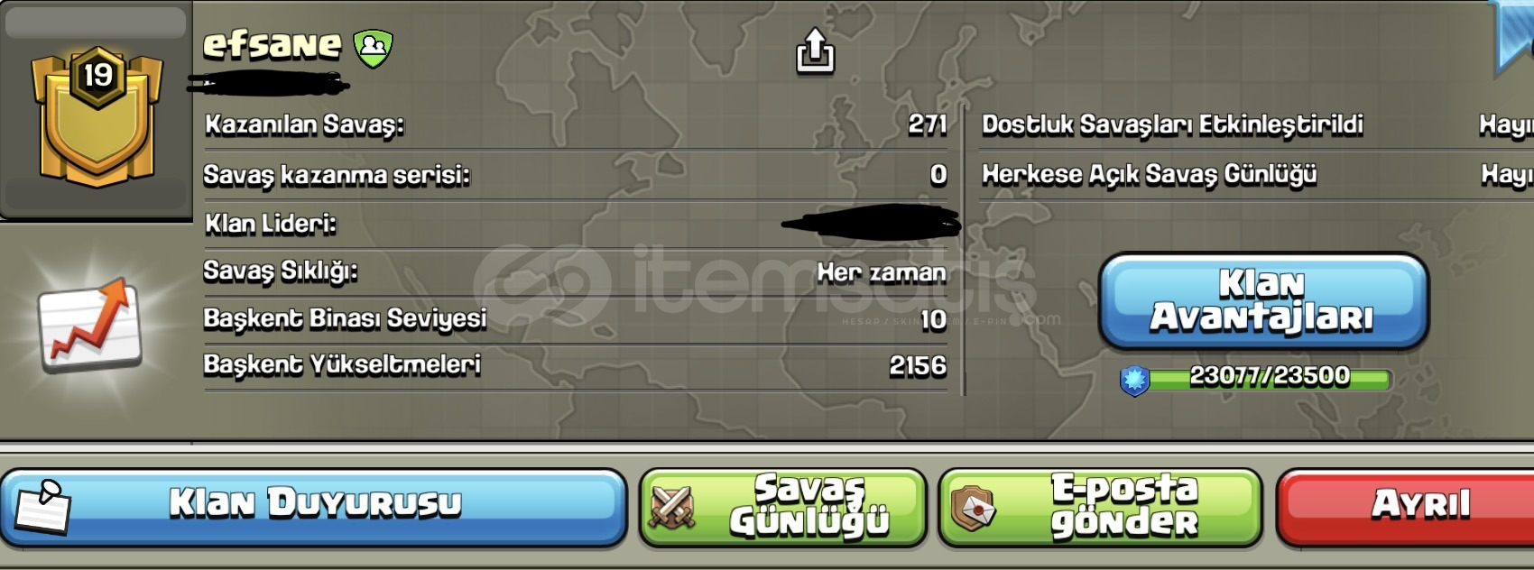 Efsane İSİMLİ 20 SEVİYEYE AZ KALMIŞ KLANIM✨