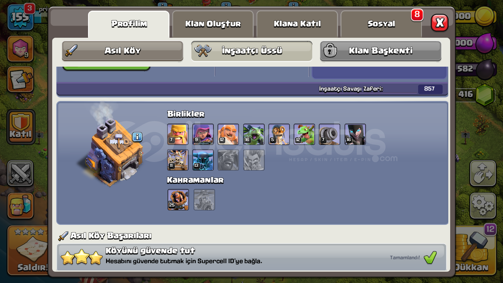 • Otomatik Teslimat: Hesabınızı dilediğiniz zaman anında satın alabilirsiniz, satın aldığınız an sizlere hesabın supercell idsinin bağlı olduğu mail adresi 'otomatik olarak' teslim edilecektir.