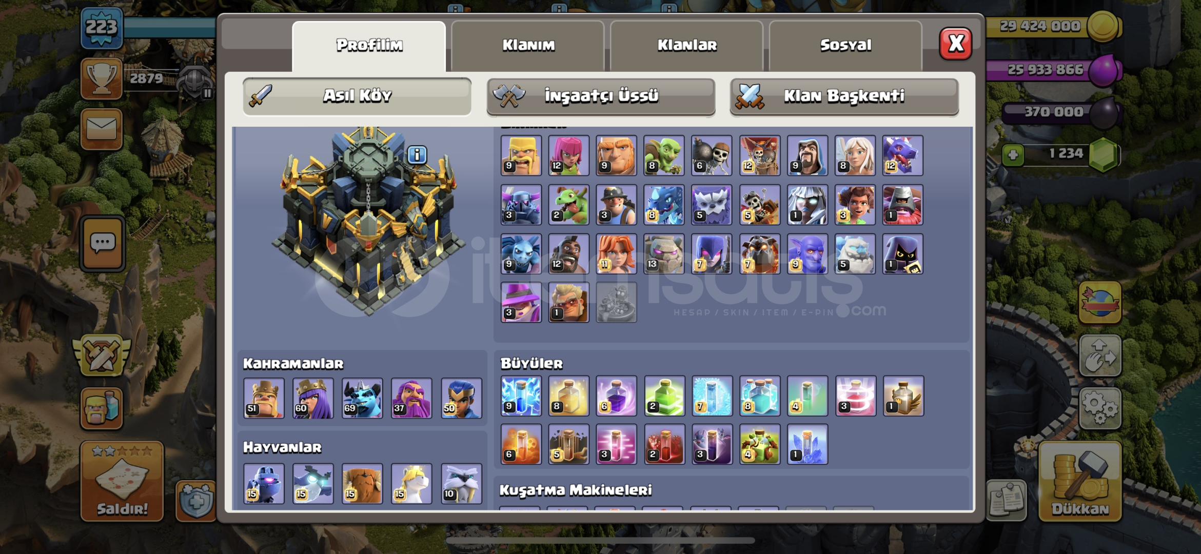 🔥 SATILIK CLASH OF CLANS HESABI 🔥🏰 TH17 | SAVUNMA FULL MAX!⚡️ Neredeyse basılacak hiçbir şey kalmamış!💎 Efsanevi arka plan mevcut — özel ve nadir!🛠️ Demirci efsanevi seviyede, gelişim üst düzey 💪👑 Herolar sadece geride, alıcı sadece hero basarak tam max köyün keyfini çıkarabilir!🌟 Yan köy de tamamen max!🧙‍♂...