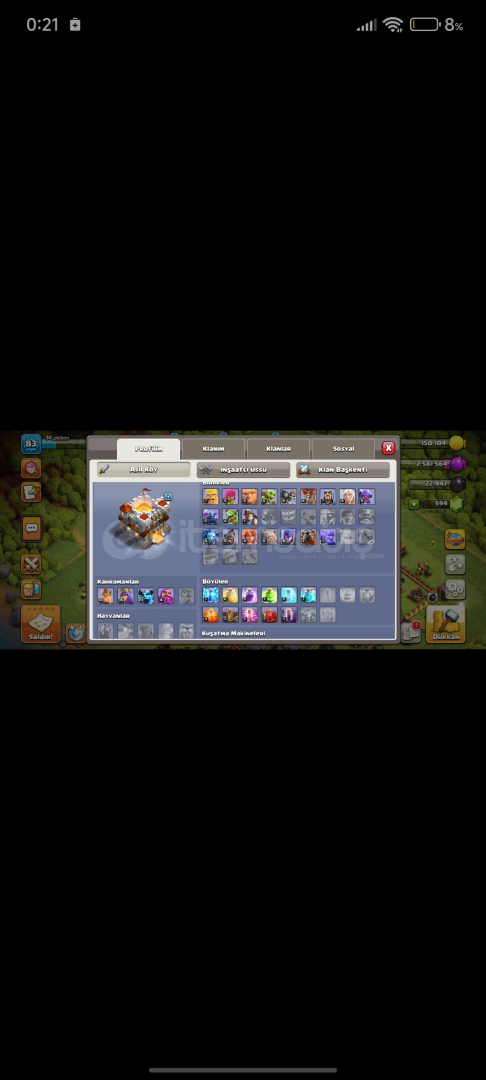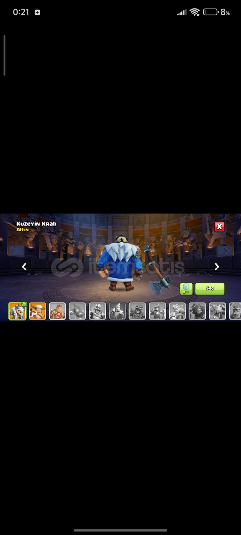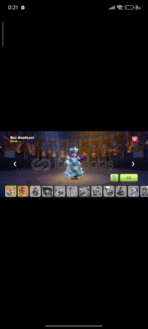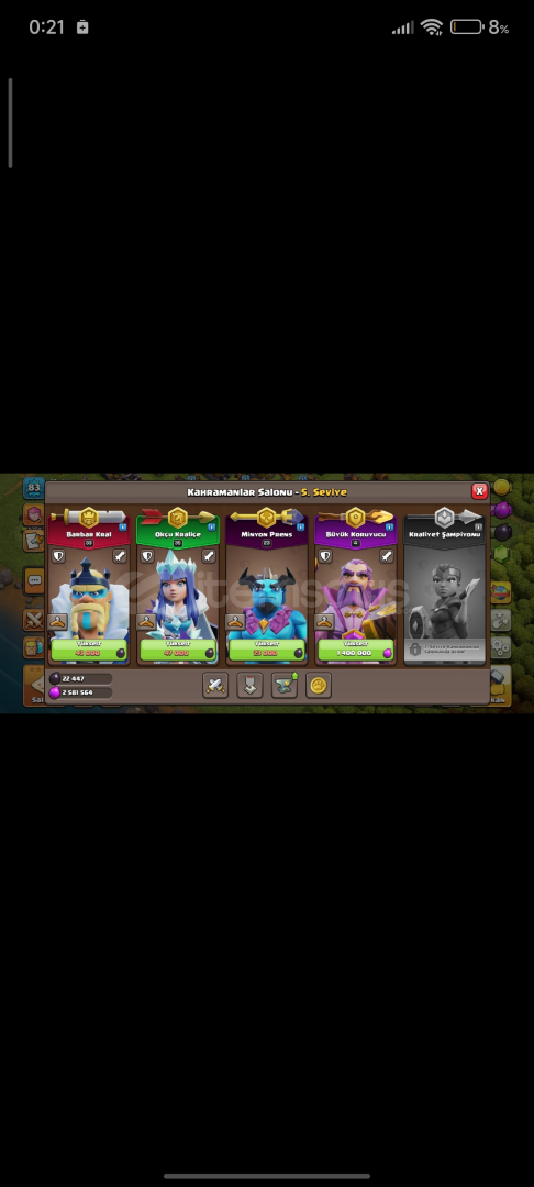 4 hero skini bulunur+500 taş Ordu seviyesi fotoda var pazarlık olur.( Almadan önce mesaj atınız iyi günler )