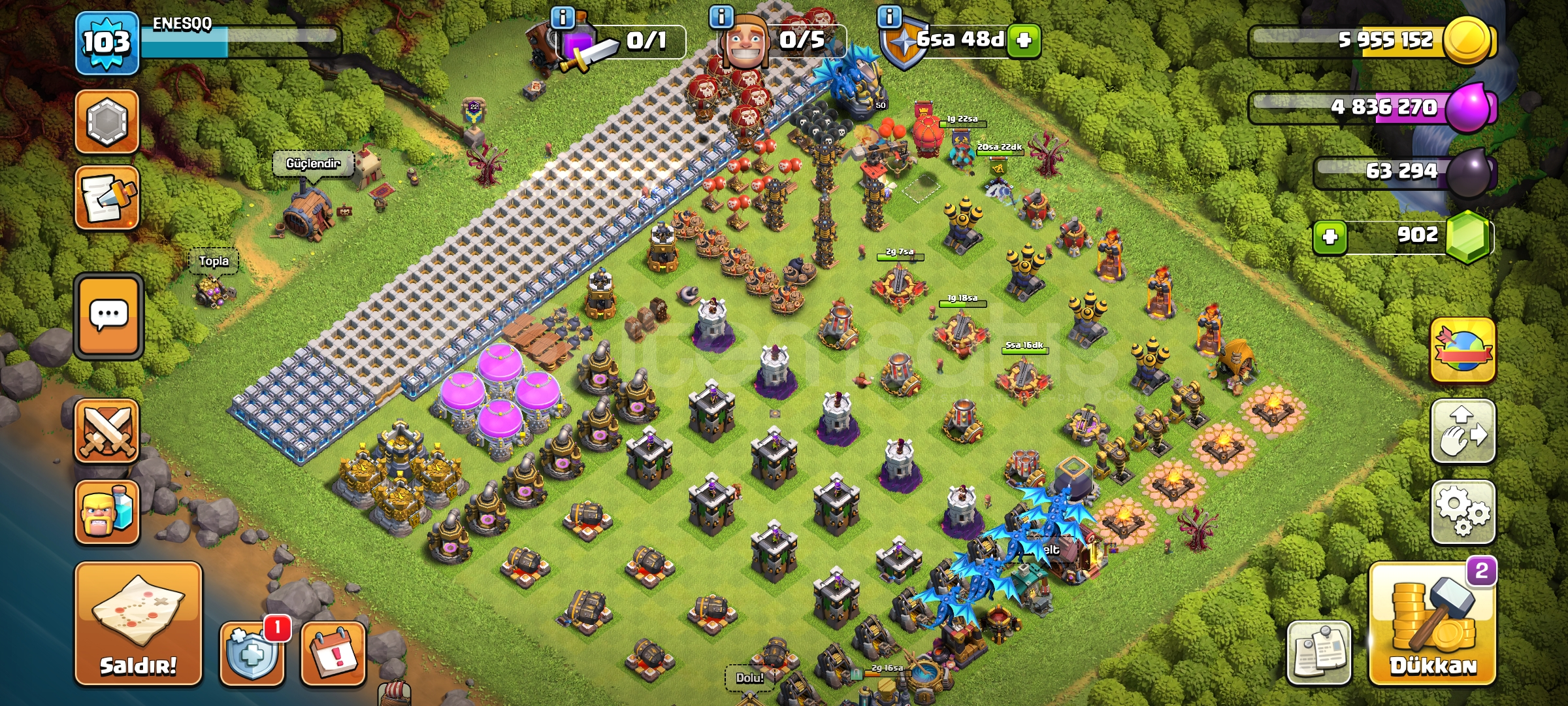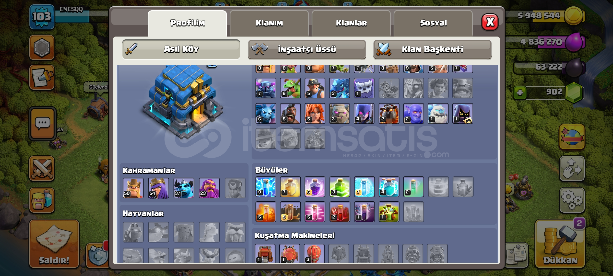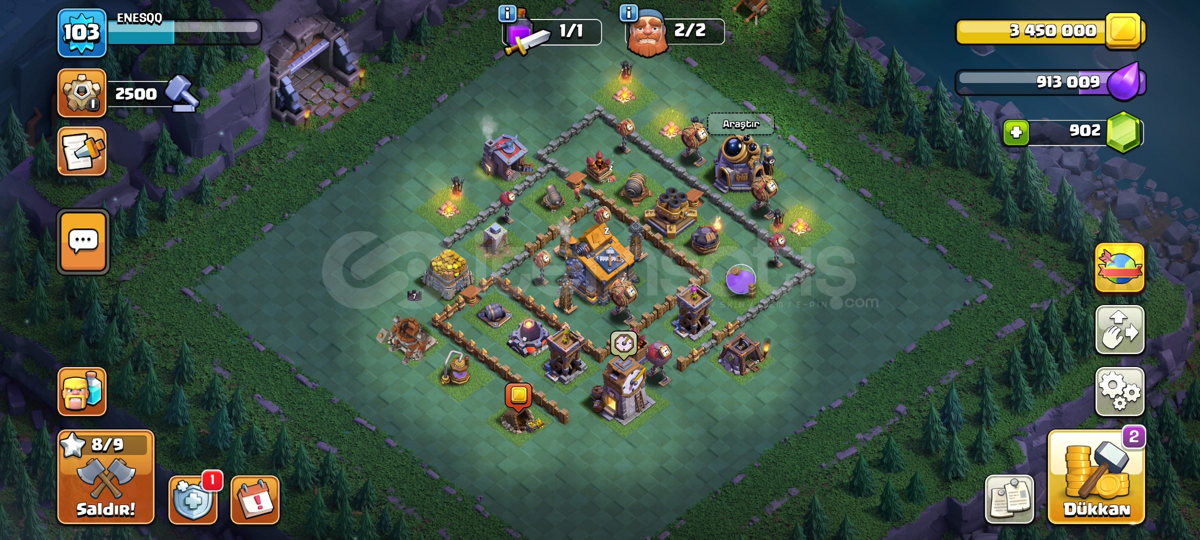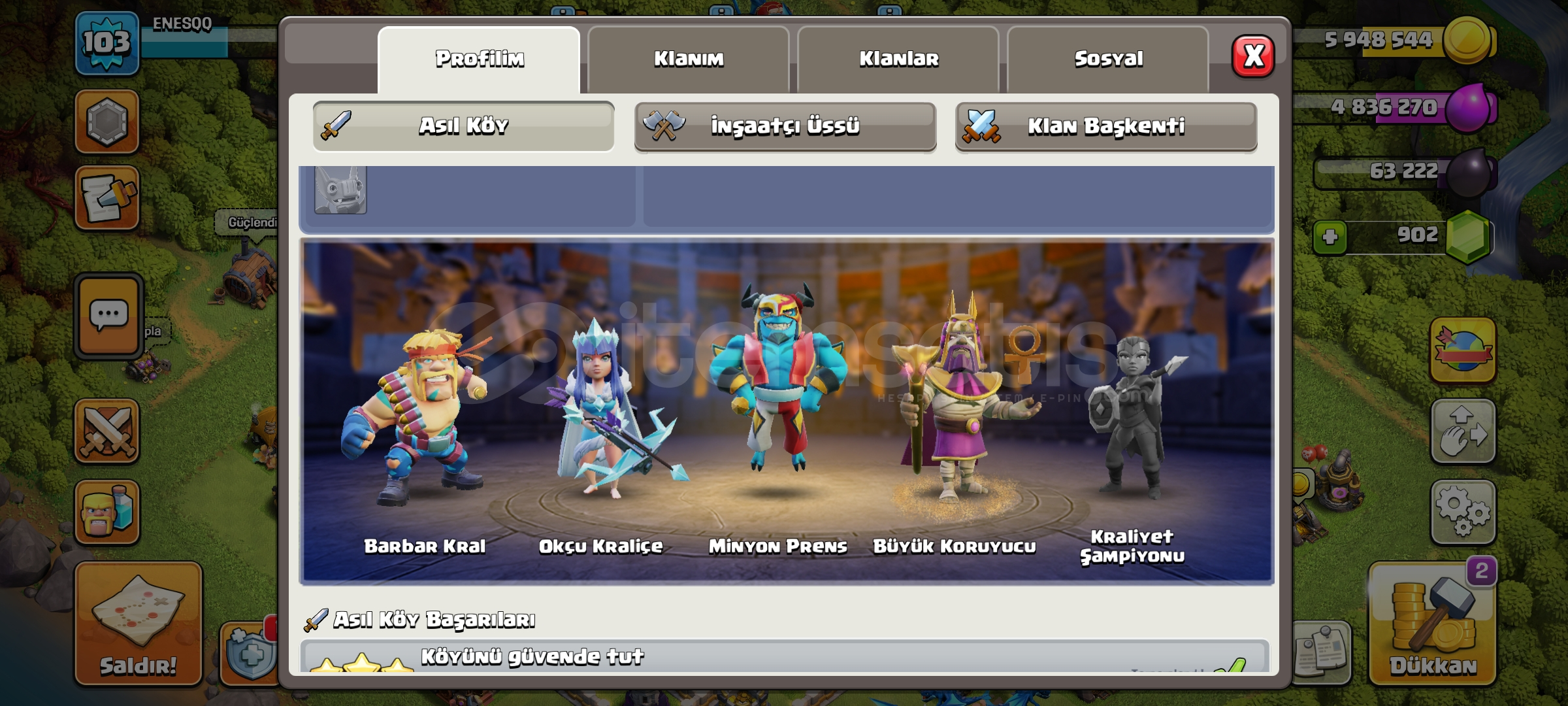 5 tane skin var 900 taş 5 inşaatçı full seviyeler 103 seviye