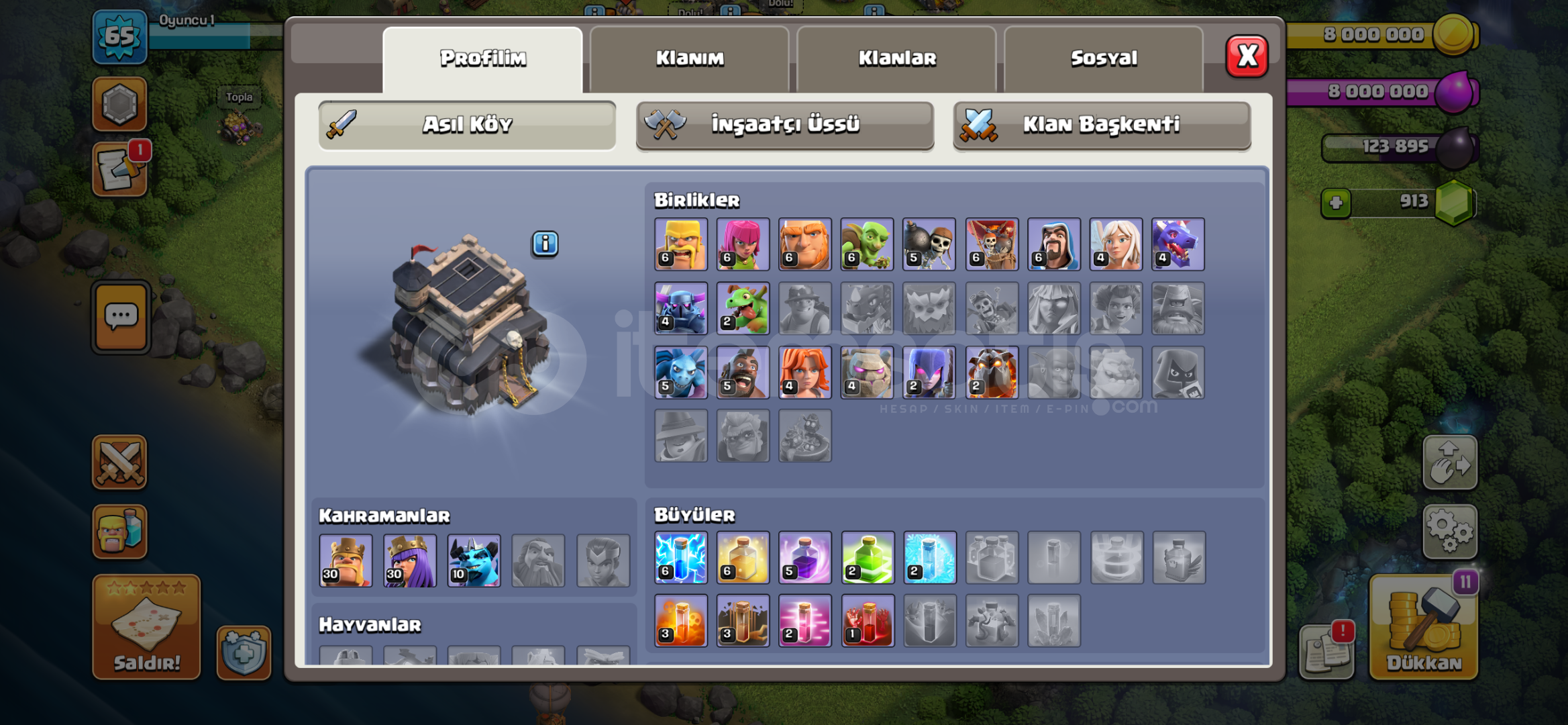 Oyunu bıraktığım için satıyorum. Detaylar Resimlerde.Supercell ID Gmail hesabına bağ.Ücrestiz isim değişikliği hakkı mevcut.Son Fiyattır DM yazıp pazarlık yapmayın, stok teslimat: ödedin Gmail adresi ve şifreni aldın. Alana şimdiden hayırlı olsun.