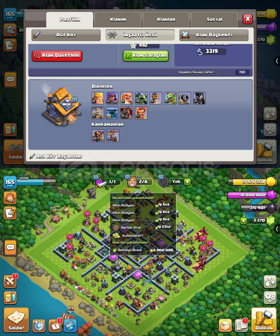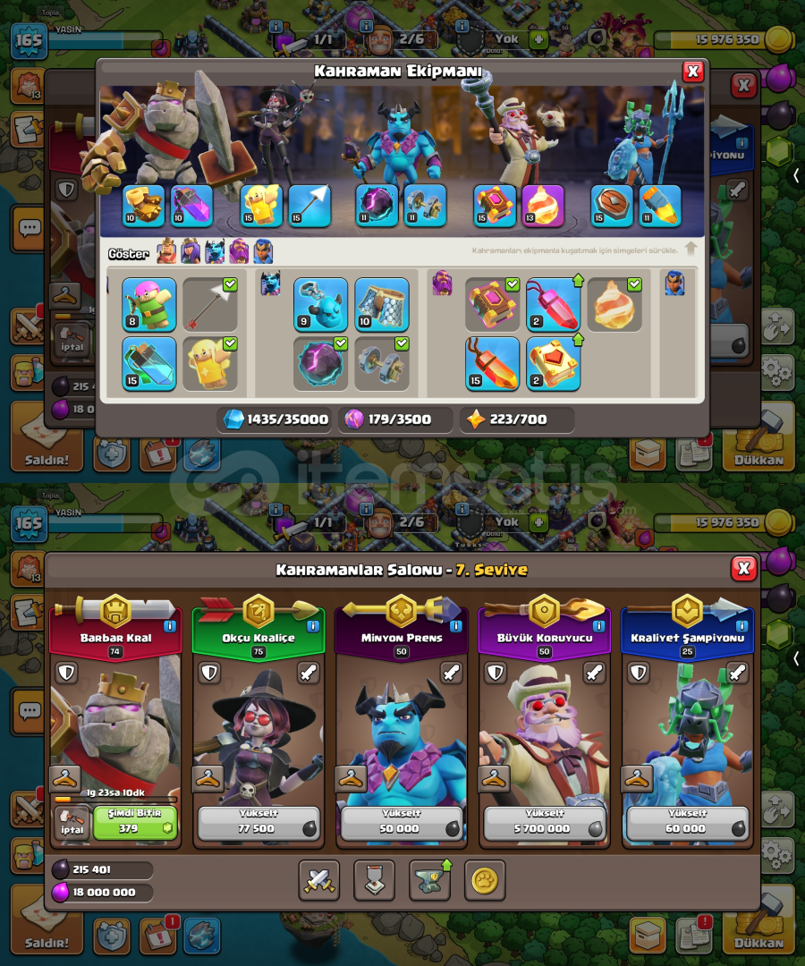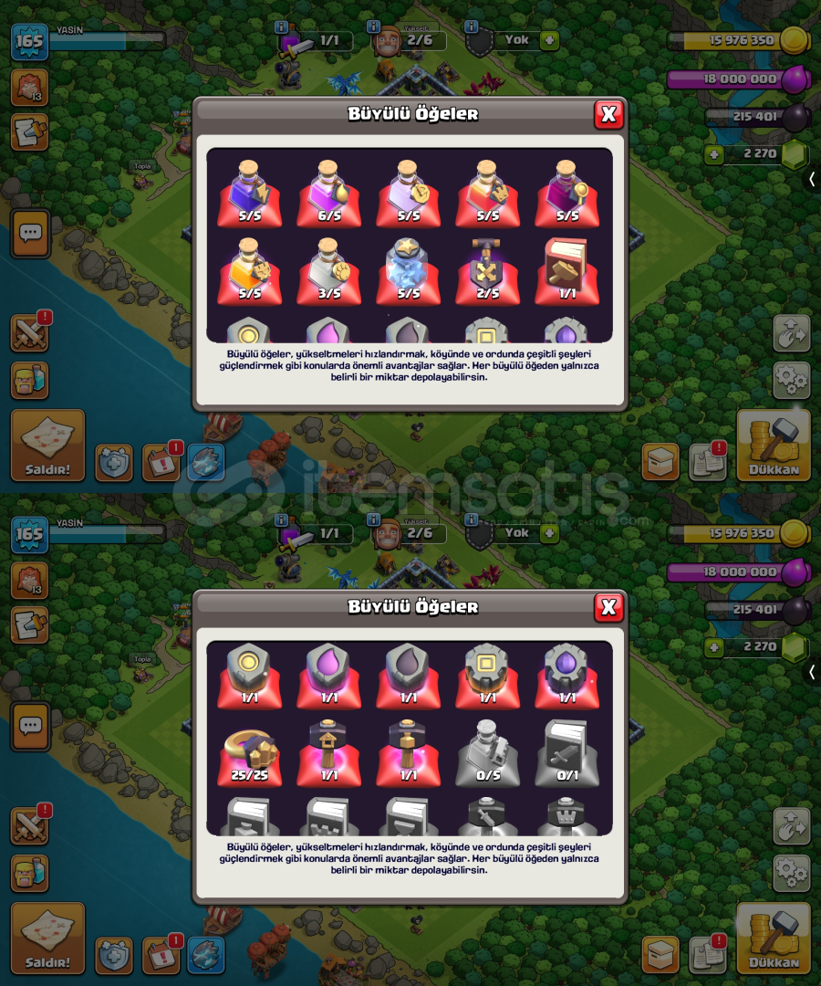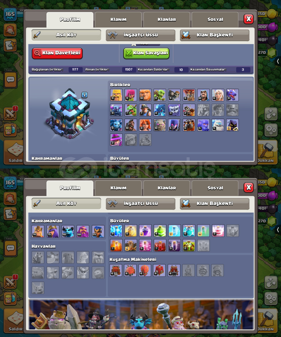 ALMADAN ÖNCE İLETİŞİM KURULMASI ÖNEM ARZ ETMEKTEDİRHESABIN ID : LUCJVYVQV DİR BURADAN BAKABİLİRSİNİZ.HESABIN SAVUNMALAR VE DUVARLAR FULLDÜR ALAN KİŞİ TH14 E DİREKT BASABİLİRARAŞTIRMA LABORATUVARI FULLDÜRSON OLARAK HESAPTA 6 KOSTÜM BULUNMAKTADIRKORUMA AKTİF DEĞİLDİR.HEROLARIN SEVİYELERİOKÇU KRALİÇE : 75 LVL (BB13'E GÖRE SON SEVİYE...