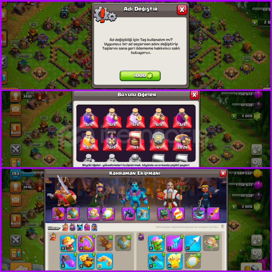 - HARİKA Hesaptır, Şimdiye Kadar Hesaba Girmiş Kim Varsa Herkesten Çıkış Yapacak Şekilde Sizin Vereceğiniz Maile Bağlanır.Detaylı Fotoğraf Ve Bilgi İçin İletişime Geçebilirsiniz.MAĞAZAMIZDA Kİ TÜM HESAPLAR İÇİN ÖMÜR BOYU GARANTİ!MAĞAZAMIZDA Kİ TÜM HESAPLARIN FİYATLARI SONDUR,Mağazamda Her Bütçeye Uygun Clash Of Cl...