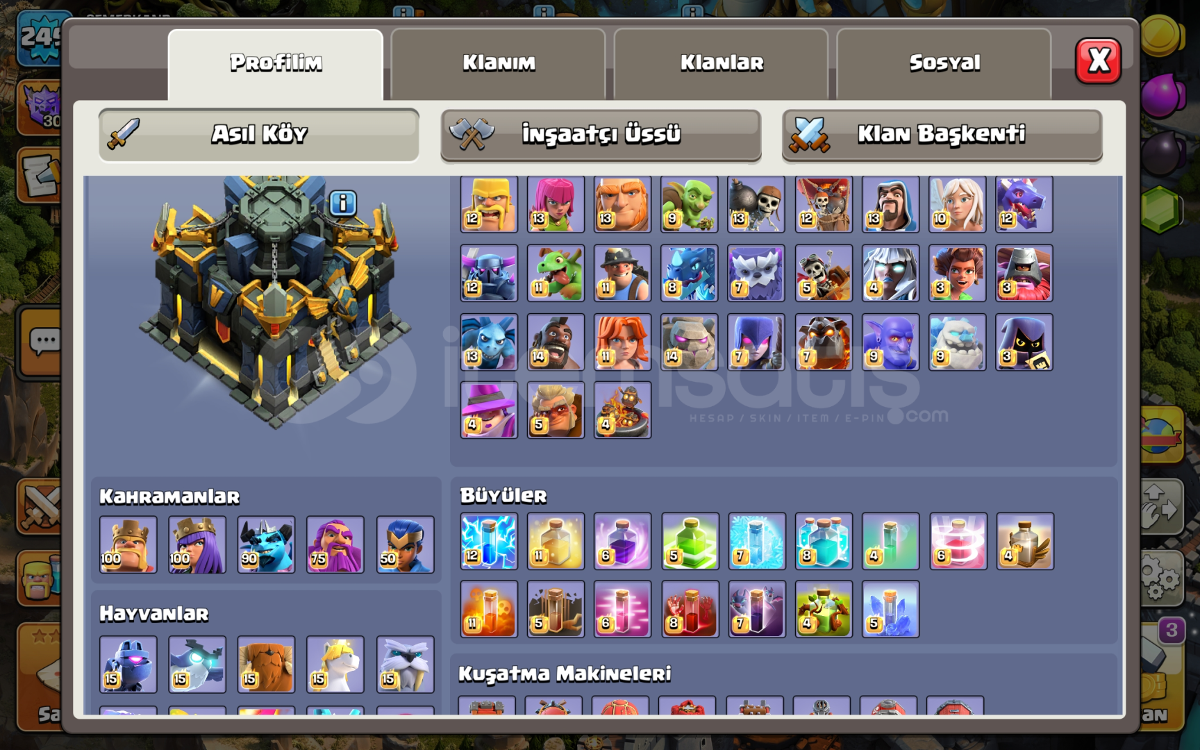 Hesaba asiri cok para harcanmistir yaklasik 9 yildir oynanmaktadir tüm herseyi max hero prodilde hersey max sadece ve sadece 30.000tl pazarlik vardir ucuz ve güvenilir bol birikimide vardir hesabin daha detayli fotosunu isteyen yazsin burada en fazla 10 foto varmis ve + 21 seviye aktif full klanda yaninda hediye
