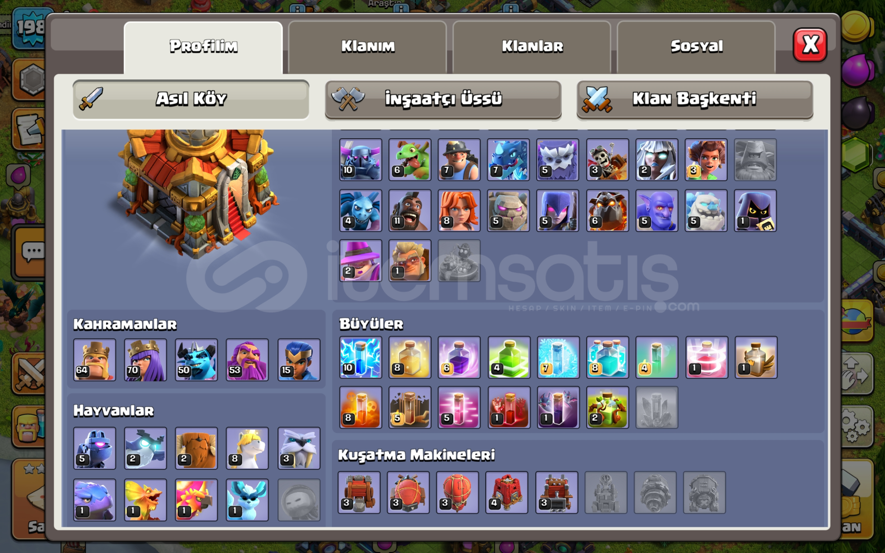 Hesap fulle yakin cok saglam birikim insaat kitabi 2k+ cevher hersehi var 1k lig puani devasa hesap sadece 2500tl pazarlik vardir