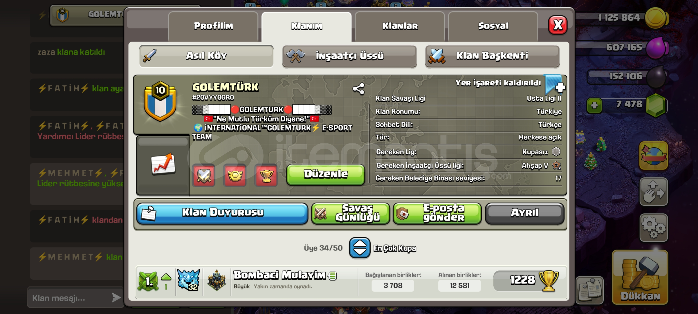 Mükemmel GOLEMTÜRK klanı ,başkent max ,Lig Usta 2 fırsat klan